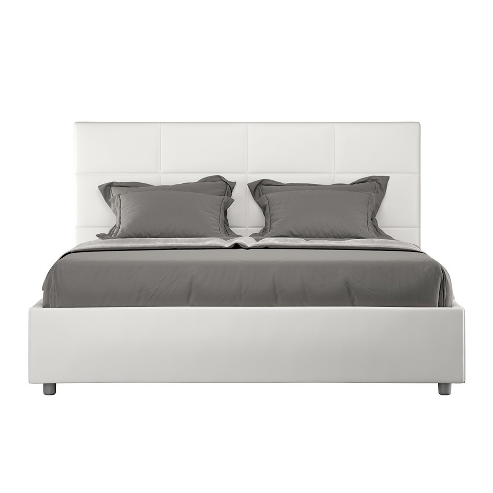 Lit 160 x 200 cm avec tête de lit rectangulaire en similicuir, fabriqué en Italie - Brina