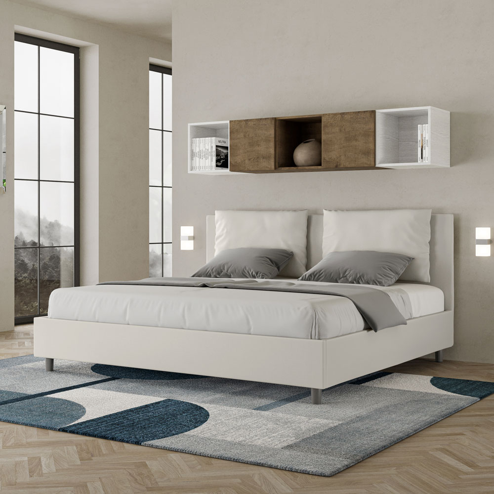 Lit king-size 180x200 cm rembourré et recouvert de similicuir, fabriqué en Italie