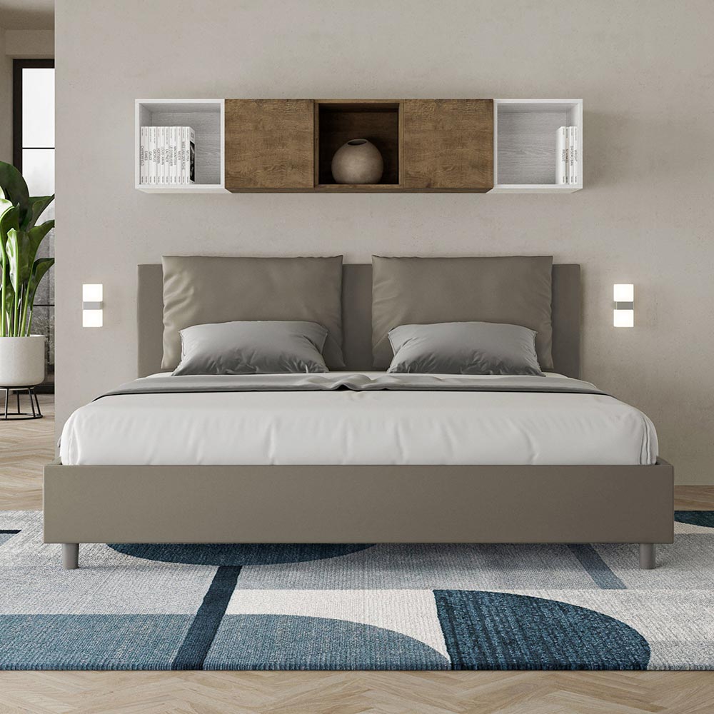 Lit king size 180x200 cm rembourré, composé de panneaux de mélamine et recouvert de simili cuir , entièrement fabriqué en Italie. Ce lit king-size avec cadre rembourré incarne parfaitement les avantages d'un lit capitonné : confort, style contemporain, fonctionnalité et optimisation de l'espace . Sa tête de lit généreusement rembourrée offre un coin détente idéal pour lire ou regarder la télévision, sublimant ainsi votre chambre. Élégant et raffiné, ce lit est revêtu de similicuir, ce qui facilite son entretien : un simple coup de chiffon microfibre suffit pour lui redonner tout son éclat.