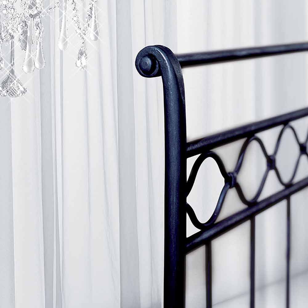 Le lit en fer forgé dans la variante TÊTE DE LIT DOUBLE AVEC PIED DE LIT ET BANDES LATÉRALES prévoit l'insertion d'un sommier 160 X 190 qui peut être soutenu par ses propres pieds ou appliqué pour reposer sur le cadre du lit. Cette deuxième solution est recommandée par l'entreprise car elle facilite les opérations de déplacement et de nettoyage. Dans tous les cas, la décision sur la manière d'appliquer le sommier peut être prise directement au moment du montage et est réversible car les supports de support sont inclus dans l'équipement du lit. En cas d'exigences particulières liées à la conformation physique, à la combinaison avec des sommiers existants ou simplement à l'esthétique, ce modèle, grâce à notre productivité artisanale, peut être modifié en hauteur, longueur et largeur.