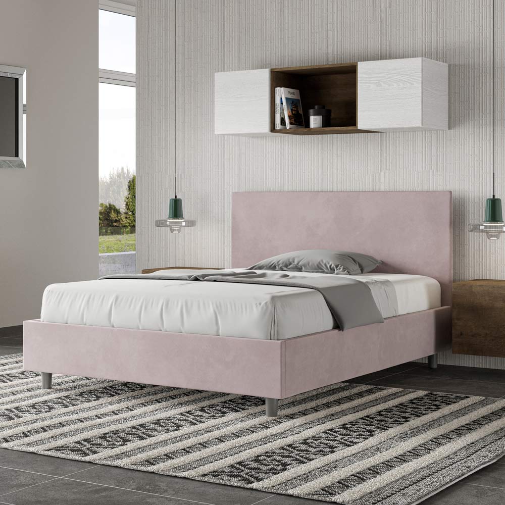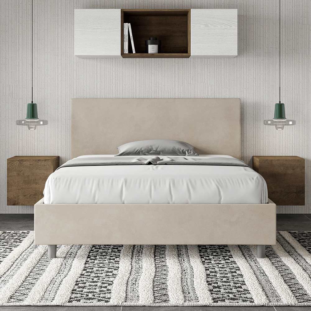 Lit français 140x200 cm rembourré et recouvert de microfibre, fabriqué en Italie