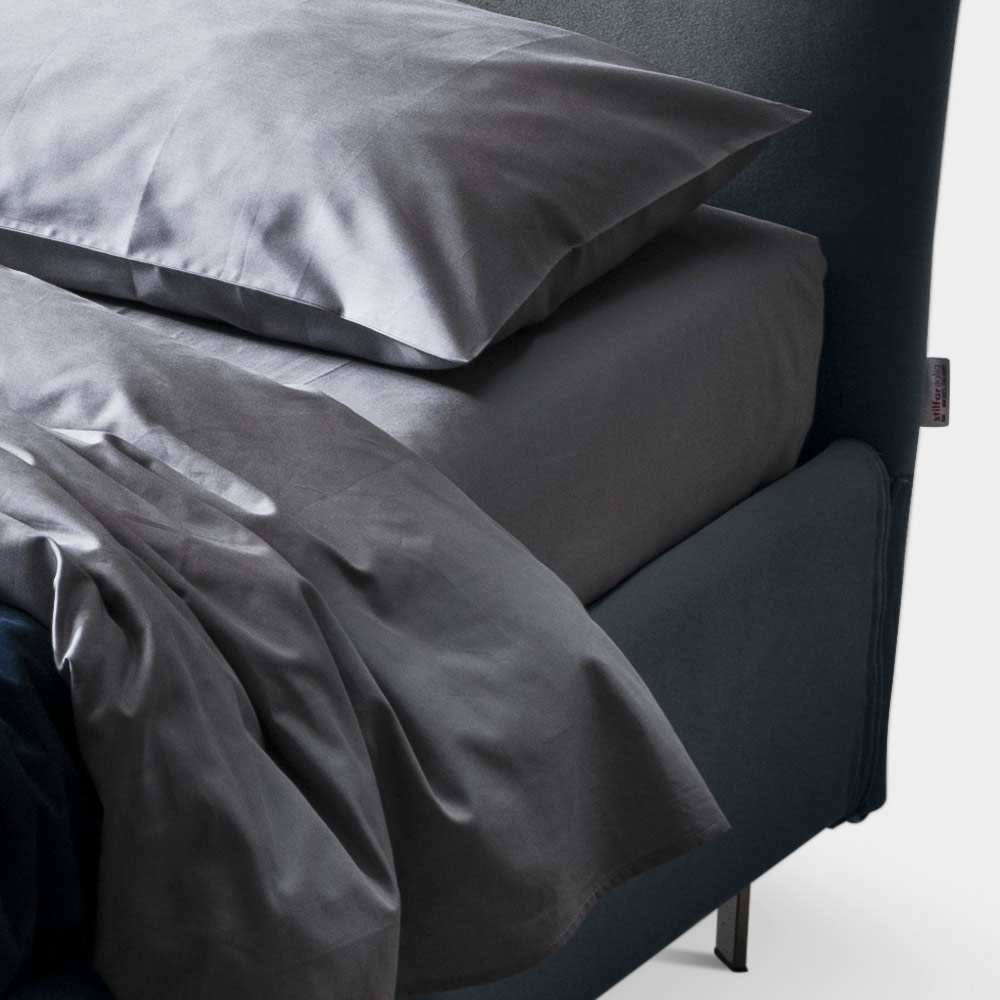 les panneaux inférieurs du coffre de rangement, certifiés en classe E1 à très faible teneur en formaldéhyde, sont en stratifié de 10,5 mm d'épaisseur, de couleur grise assortie au tissu intérieur du cadre de lit, pour permettre un nettoyage et une hygiène faciles à l'aide d'un chiffon humide commun pour la poussière.