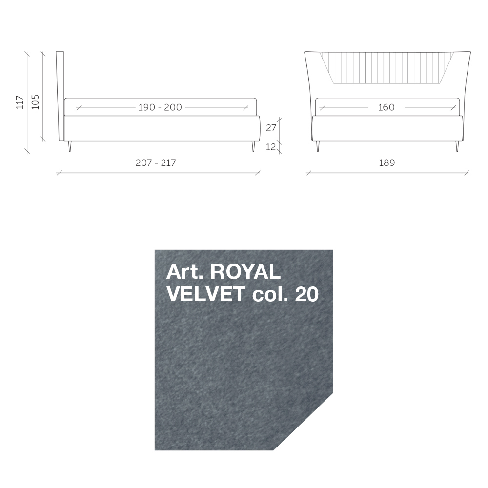 Lit double avec sommier dynamique , coffre de rangement,pieds en métal avec finition en acier poli (hauteur 12 cm) et tête de lit au design particulier et innovant : les côtés ont des lignes courbes et la partie centrale de la tête de lit est réalisée avec des inserts matelassés avec de larges lattes verticales en tissu ignifuge. Ce lit est l'incarnation du confort et du design contemporain. C'est une combinaison parfaite de raffinement et de fonctionnalité , conçue pour offrir des nuits de pure détente et un style incomparable.