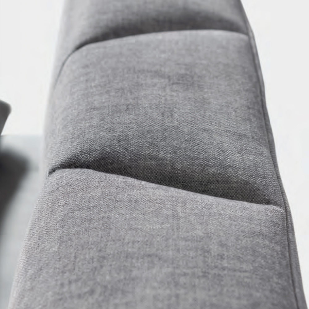 les panneaux inférieurs du coffre de rangement, certifiés en classe E1 à très faible teneur en formaldéhyde, sont réalisés en stratifié de 10,5 mm d'épaisseur, de couleur grise assortie au tissu intérieur du cadre de lit, pour permettre un nettoyage et une hygiène faciles à l'aide d'un chiffon humide commun pour la poussière.
