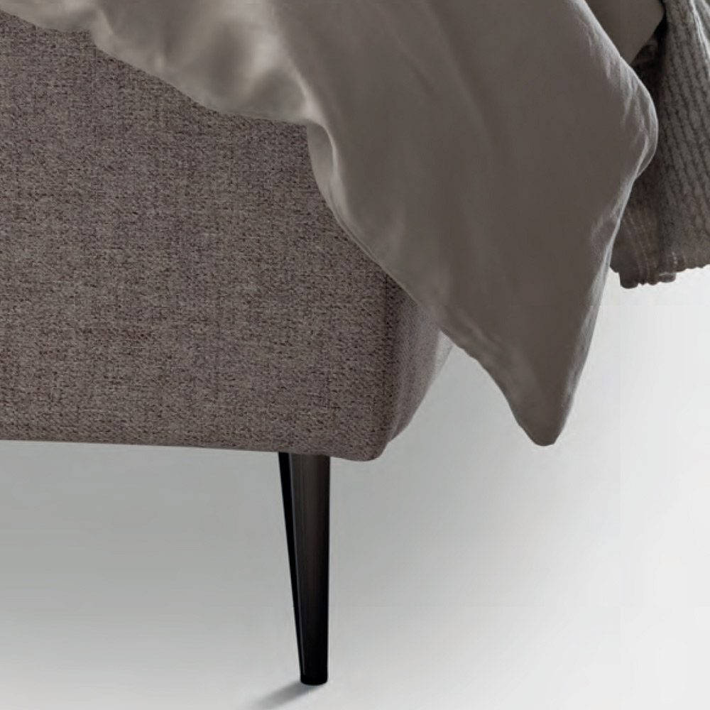 Lit double recouvert de tissu ignifuge avec sommier dynamique , coffre de rangement et pieds en métal finition moka (hauteur 15 cm). Ce lit est l'incarnation du confort et du design contemporain. C'est une combinaison parfaite de raffinement et de fonctionnalité , conçue pour offrir des nuits de pure détente et un style incomparable.