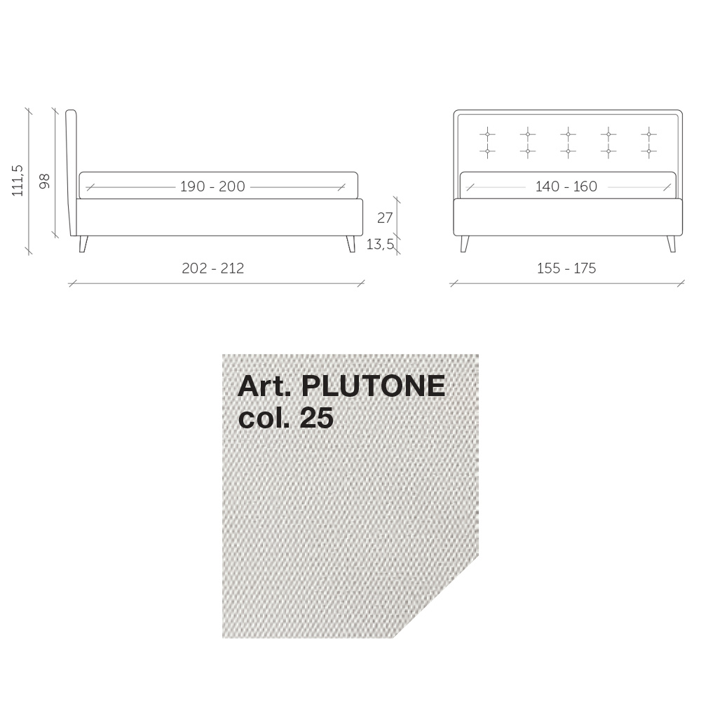 Lit Double 160x190 en Tissu avec Tête de Lit à Boutons Fabriqué en Italie - Dreams