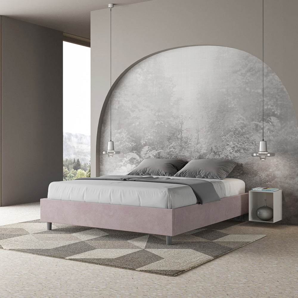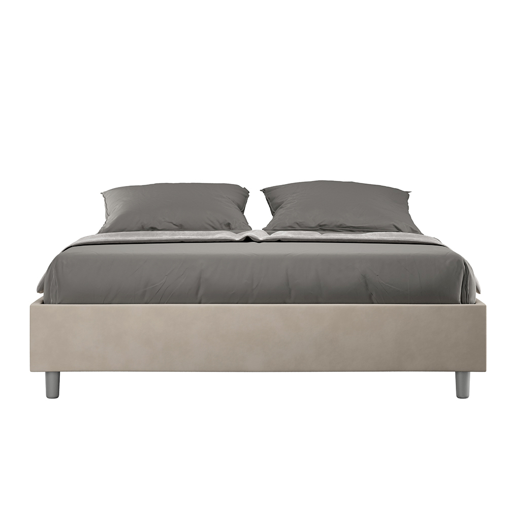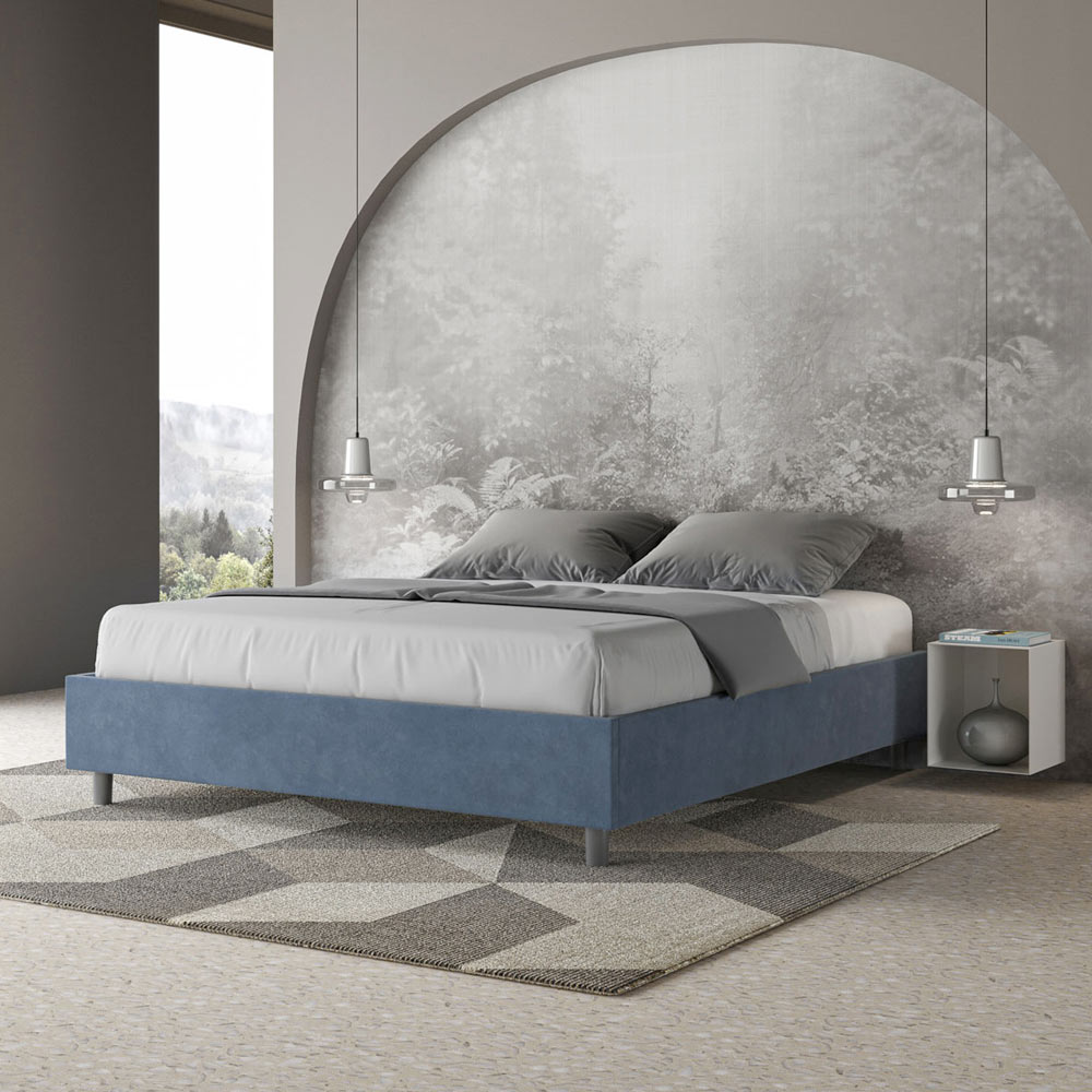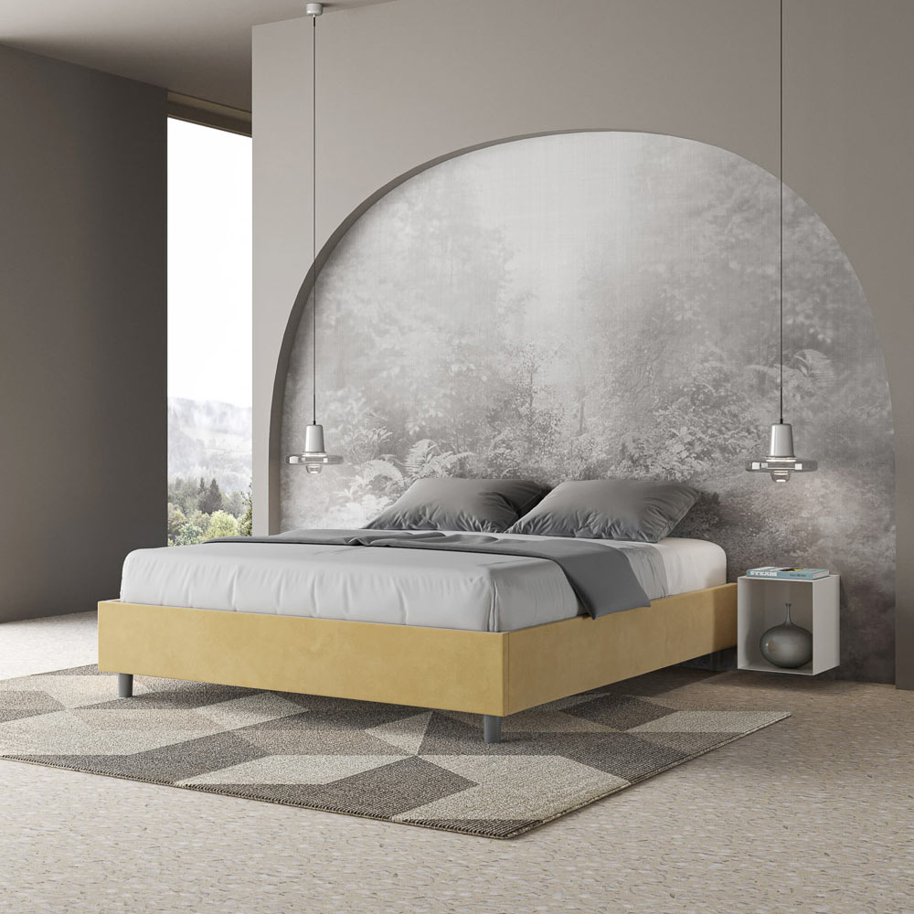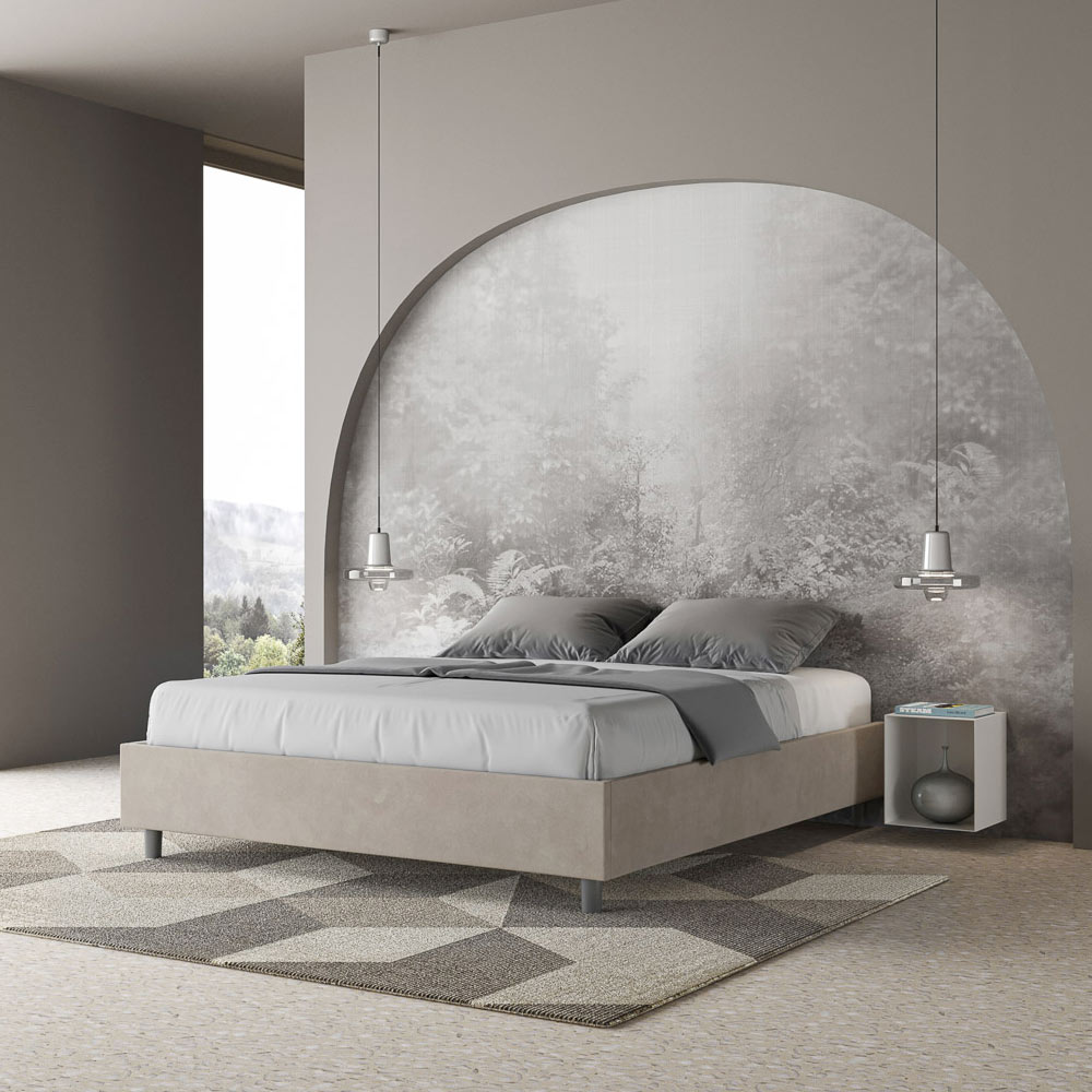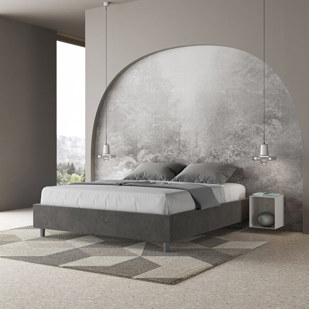 Lit double rembourré 160x200 cm, en panneaux de particules recouverts de microfibre , entièrement fabriqué en Italie. Ce lit double se distingue par son design épuré et minimaliste . Son esthétique sobre et sa polyvalence lui permettent de s'intégrer facilement à tous les intérieurs. L'une de ses caractéristiques principales est l' absence de tête de lit traditionnelle , ce qui le rend idéal pour être placé dans des espaces atypiques, comme sous une fenêtre, dans un grenier ou près d'un mur décoratif, sans obstruer la vue ni créer l'effet recherché.