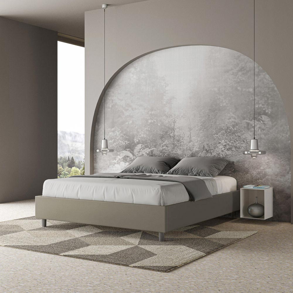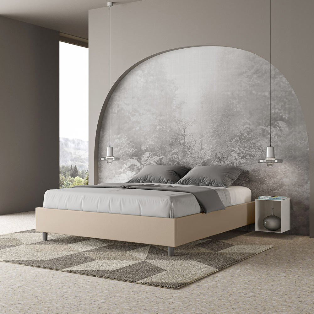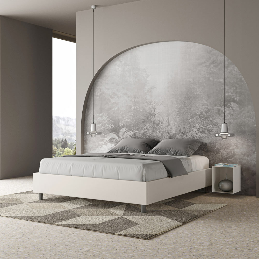 Lit double rembourré de 160 x 200 cm, composé de panneaux de particules et recouvert de simili cuir , entièrement fabriqué en Italie. Ce lit double se distingue par son design épuré et minimaliste . Son esthétique sobre et sa polyvalence lui permettent de s'intégrer facilement à tous les intérieurs. L'une de ses caractéristiques principales est l' absence de tête de lit traditionnelle , ce qui le rend idéal pour être placé dans des espaces atypiques, comme sous une fenêtre, dans un grenier ou près d'un mur décoratif, sans obstruer la vue ni créer l'effet recherché.
