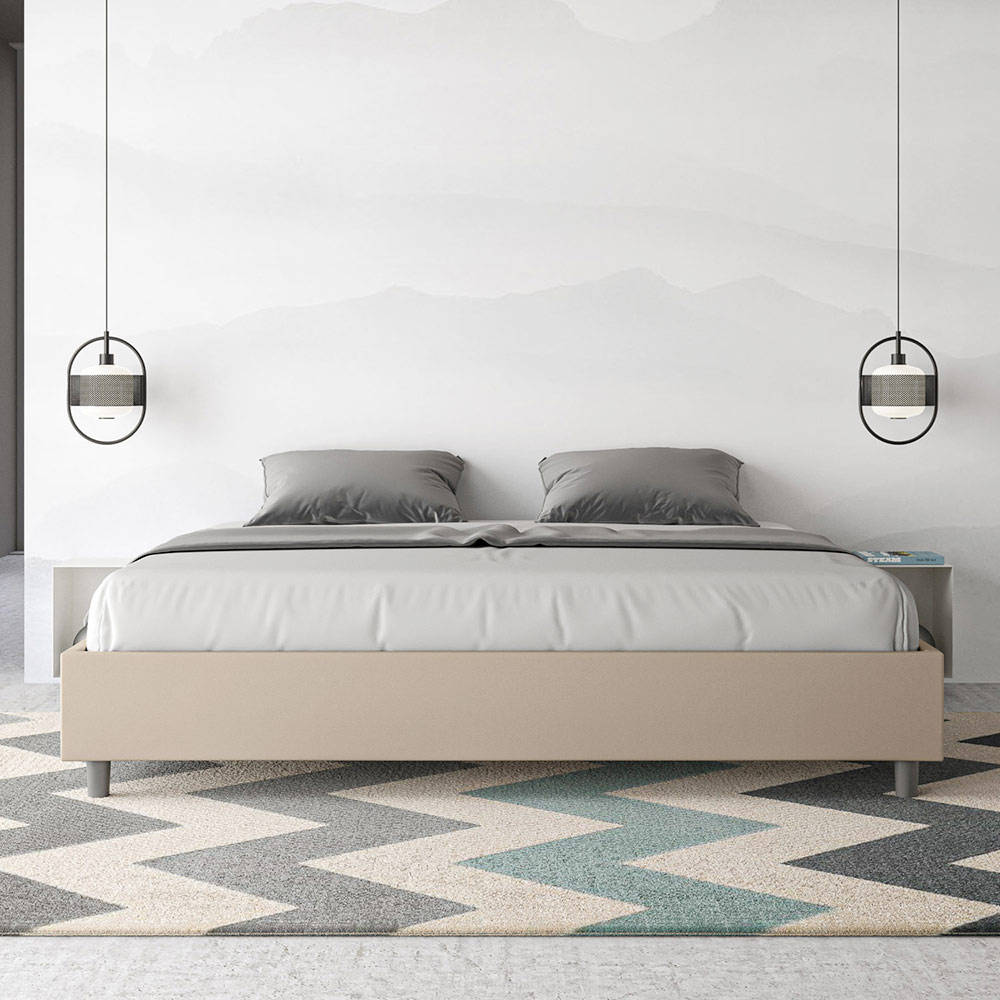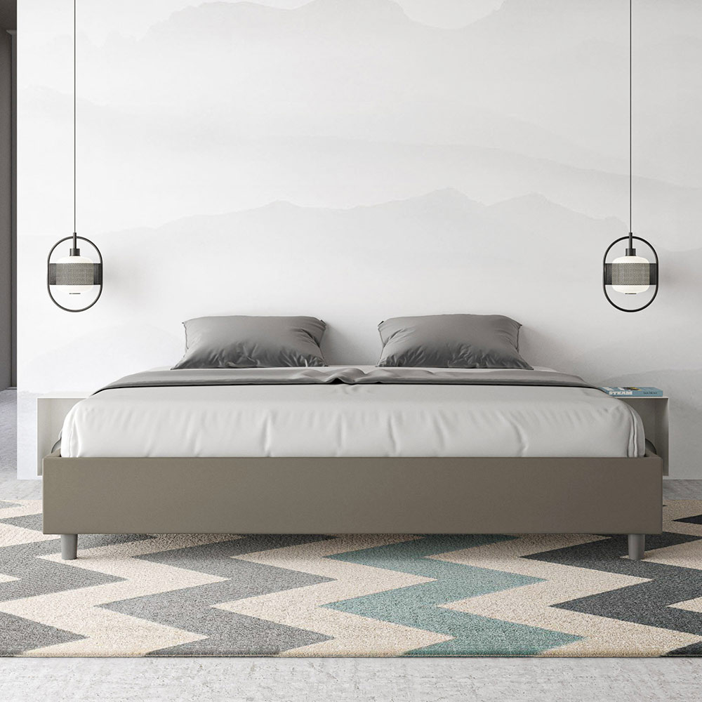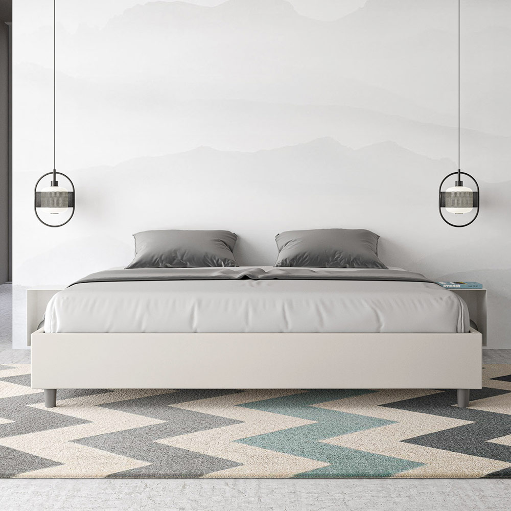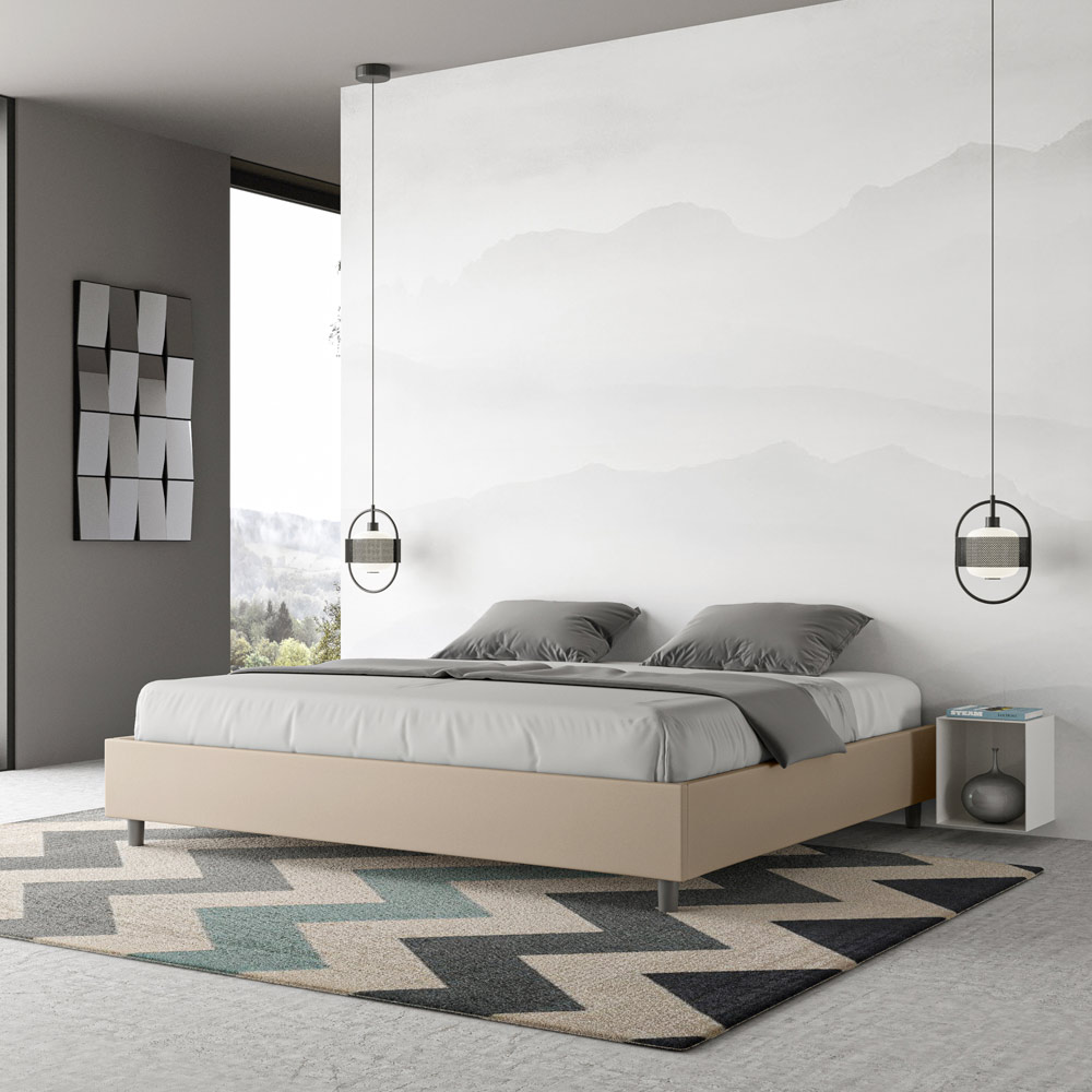 Lit king size 180x200 cm rembourré, composé de panneaux de mélamine et recouvert de simili cuir , entièrement fabriqué en Italie. Ce lit king-size se distingue par son design épuré et minimaliste . Son esthétique sobre et sa polyvalence lui permettent de s'intégrer facilement à tous les intérieurs. L'une de ses caractéristiques principales est l' absence de tête de lit traditionnelle , ce qui le rend idéal pour être placé dans des espaces atypiques, comme sous une fenêtre, dans un grenier ou près d'un mur décoratif, sans obstruer la vue ni créer l'effet recherché.
