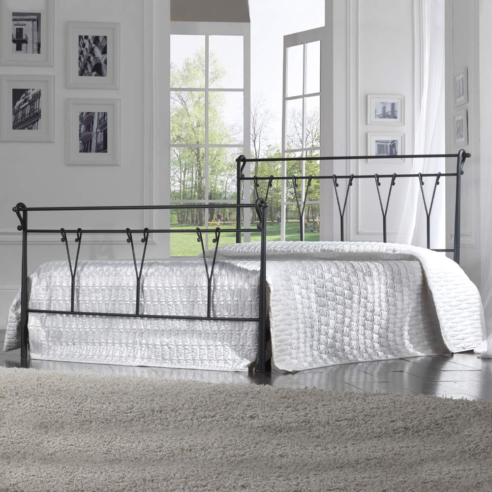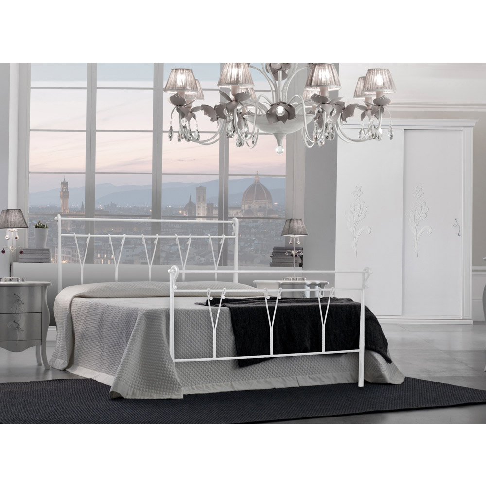 Lit double composé d'une tête et d'un pied de lit coordonnés en fertubulairefinition thermolaquée. Lit au style traditionnel et élégant qui crée une atmosphère douce et enveloppante dans chaque zone de lit dans laquelle il est inséré. Les détails en forme de Y sur la tête et le pied de lit sont cette touche unique qui rend ce produit inimitable.