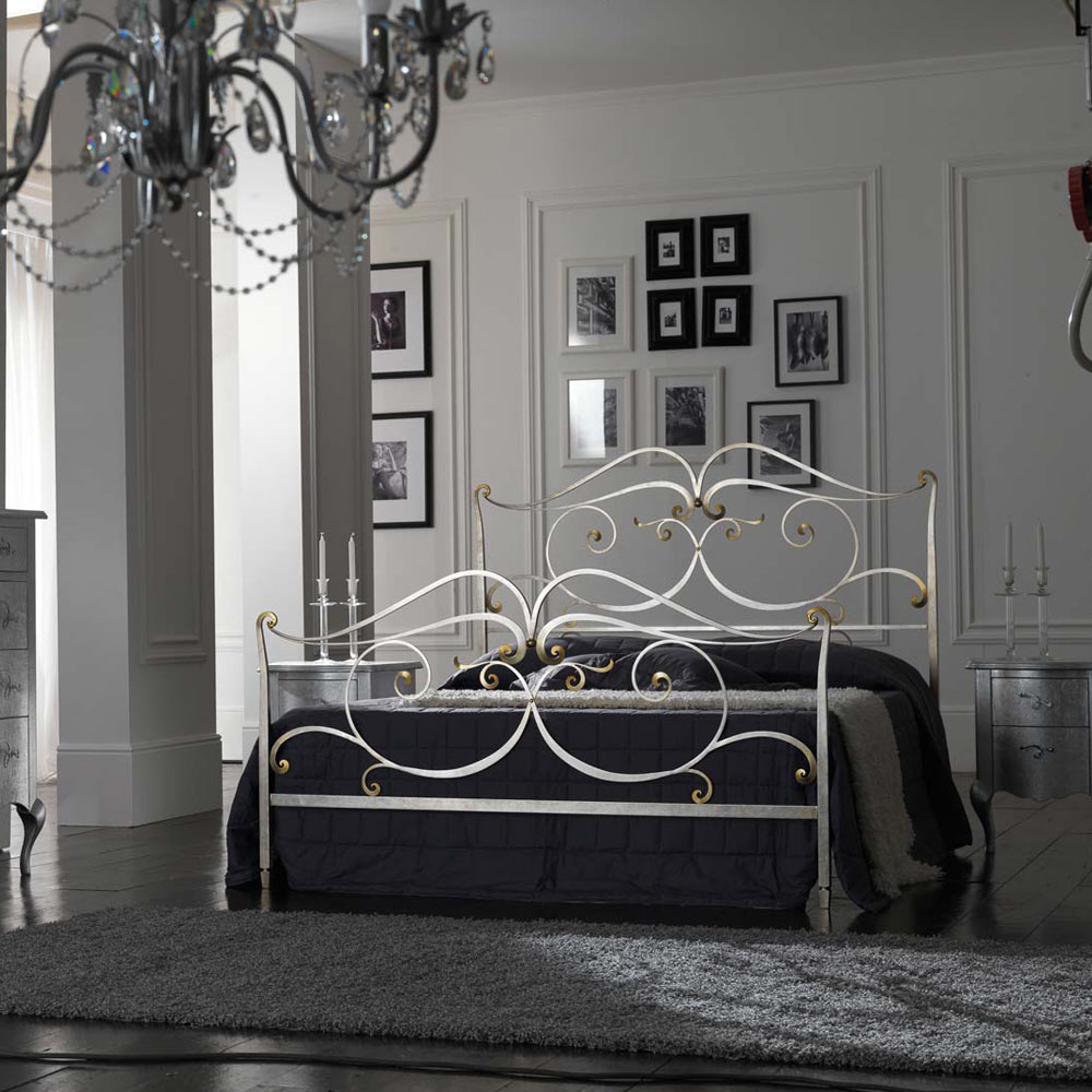 Lit double avec tête et pied de lit en fer coordonné Made in Italy