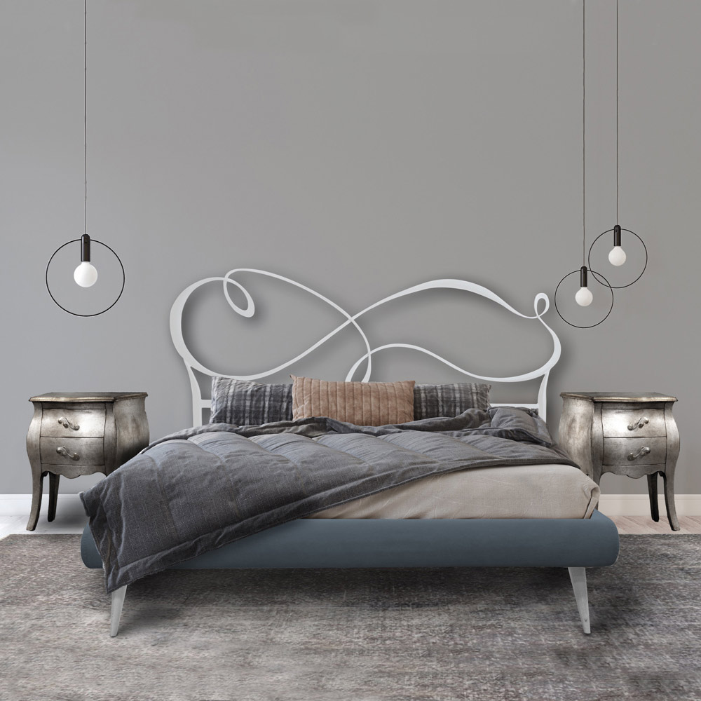 Lit double avec tête de lit en fer et 2 tables de chevet Made in Italy