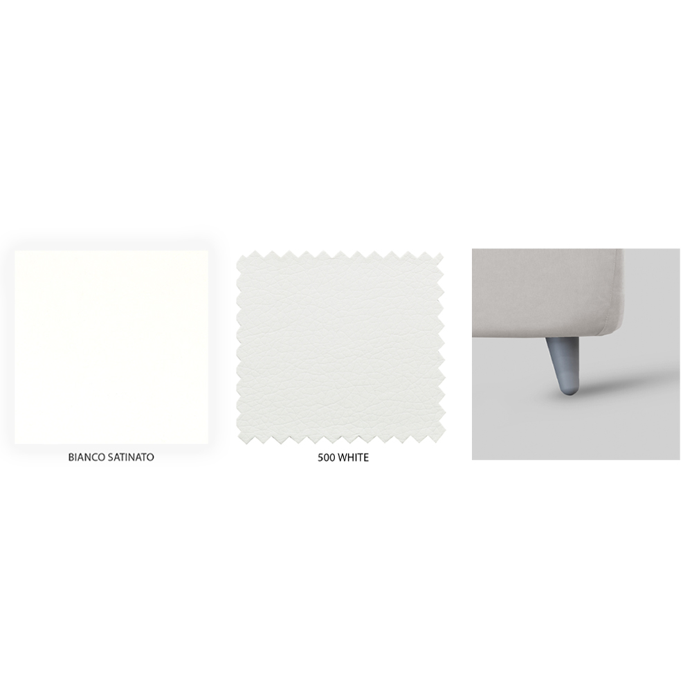Finitions disponibles :- Modèle H 11 pieds : tête de lit blanc satiné, cadre de lit en éco-cuir blanc et pieds en polypropylène gris