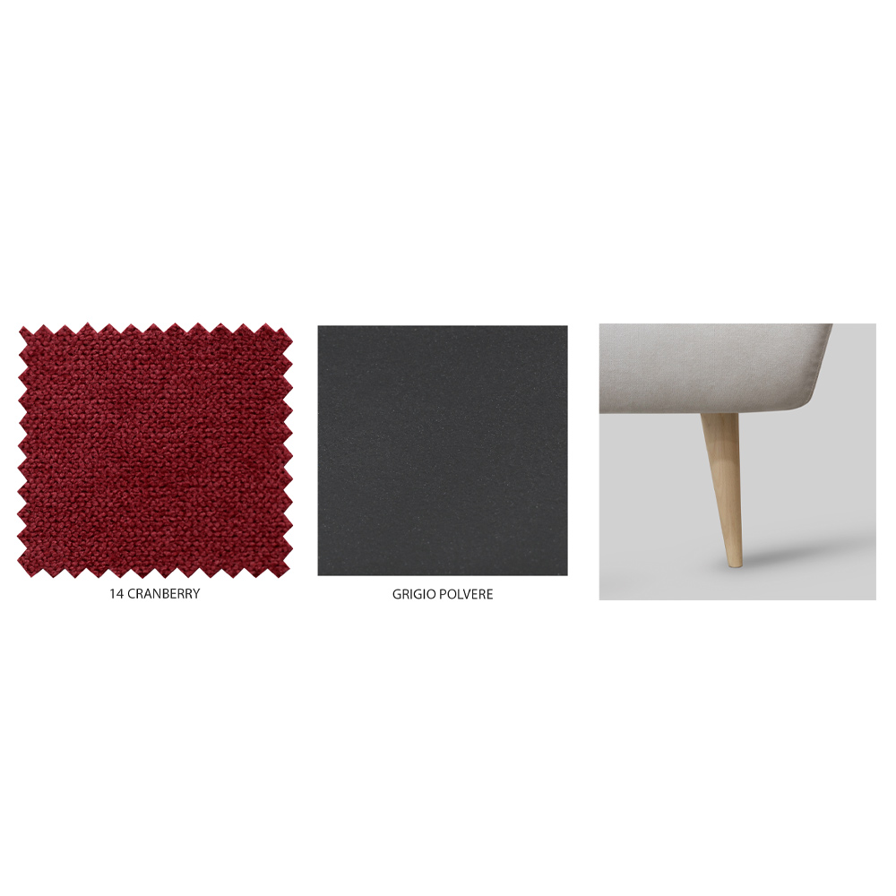 - Modèle H 25 pieds : tête de lit gris poudré, cadre de lit en tissu canneberge et pieds en bois naturel