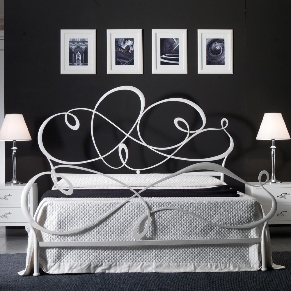 Lit double avec tête de lit en fer massif fabriqué en Italie - Nebbia