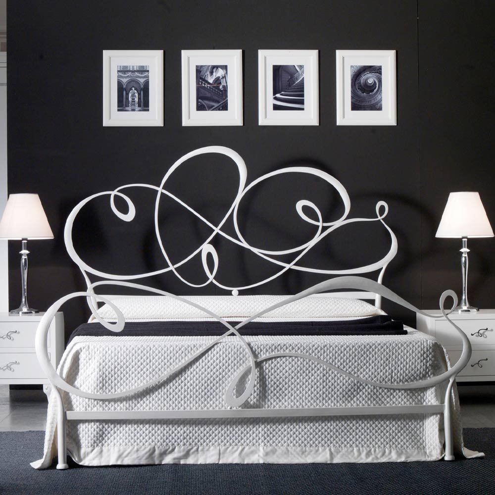Lit double avec tête de lit en fer forgé, fabriqué en Italie