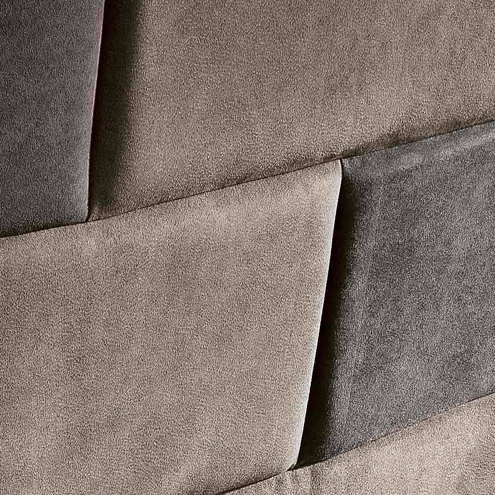 Le lit design Gin possède une importante tête de lit, composée d'un matelassage sectionnel à deux couleurs contrastées. Housse non amovible.