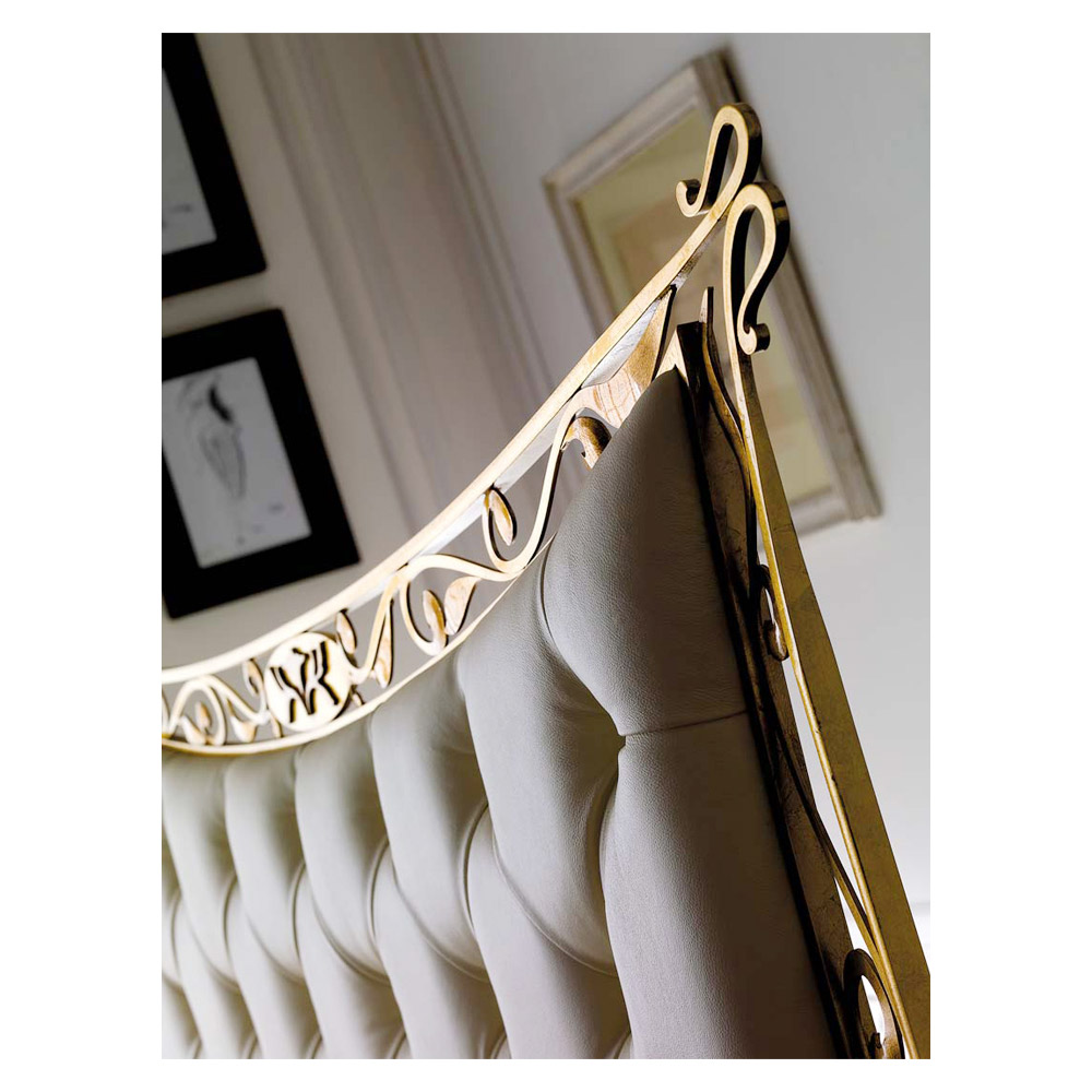 Lit double composé d'une tête et d'un pied de lit en fer massif coordonné, finition peinture feuille fabriquée à la main et rembourrage en cuir véritable, finition blanc neige. Ce produit au style classique et intemporel a un grand impact visuel et scénographique. Grâce à ces caractéristiques, il parvient à créer une atmosphère unique et évocatrice dans la chambre. Le confort et la commodité de cette structure sont garantis par l'excellente qualité des matériaux utilisés pour sa construction.