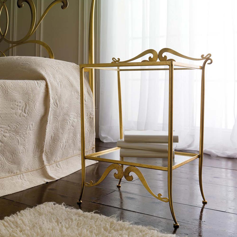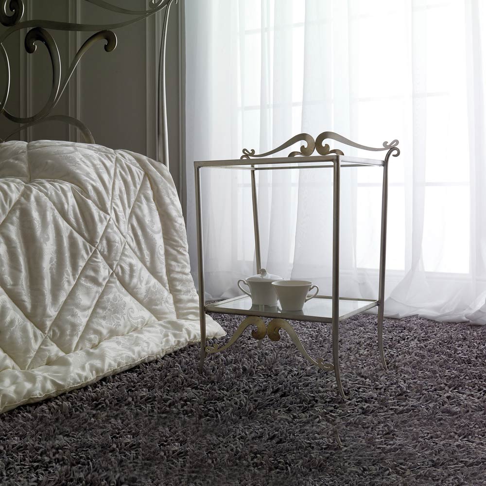 Lit double avec tête de lit en fer et 2 tables de chevet Made in Italy