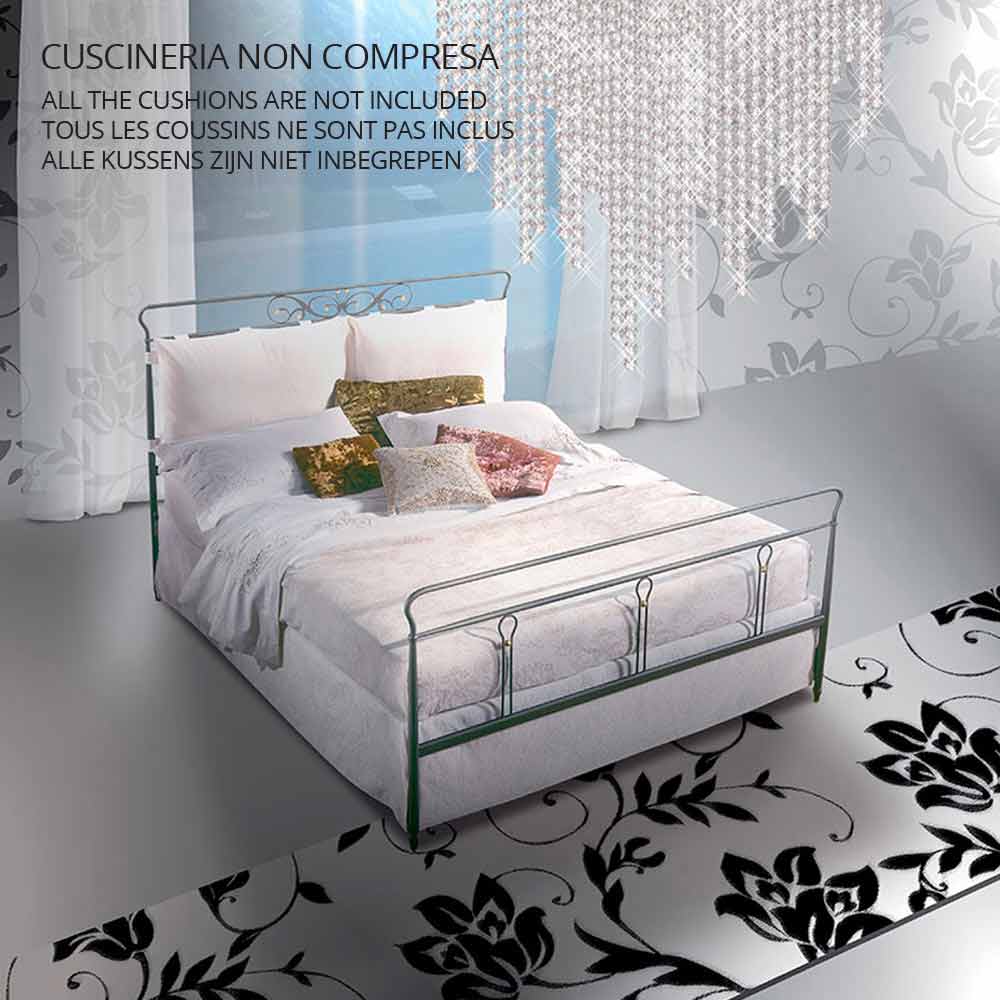 Le lit en fer forgé dans la variante TÊTE DE LIT DOUBLE AVEC CADRE DE LIT nécessite l'insertion d'un sommier 160 X 190 qui doit être appliqué en appui sur le cadre de lit. En cas d'exigences particulières liées à la conformation physique, à la combinaison avec des sommiers existants ou simplement à l'esthétique, ce modèle, grâce à notre productivité artisanale, peut être modifié en hauteur, longueur et largeur.