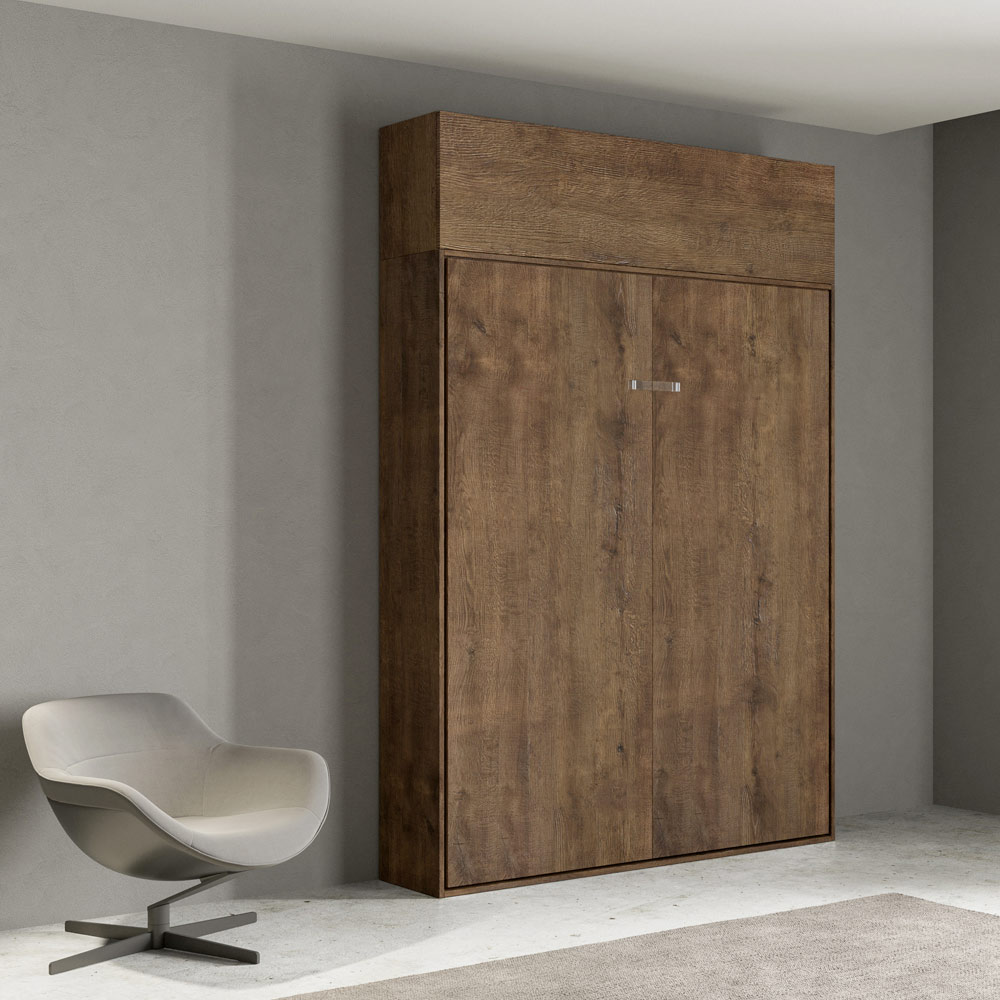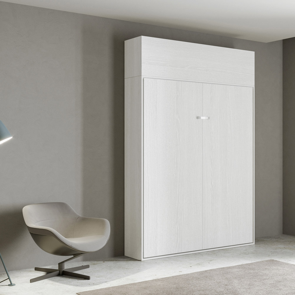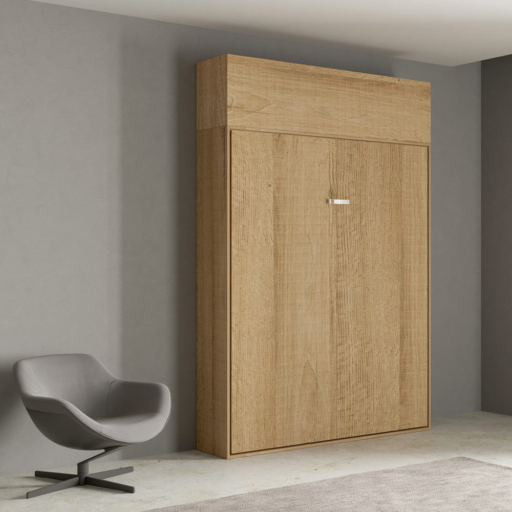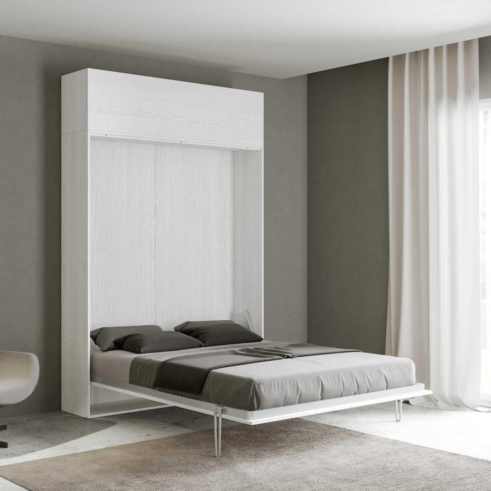 Le cadre de lit est fabriqué en panneaux de particules mélaminés de 18 mm d'épaisseur , garantissant résistance et durabilité. Le mécanisme d'ouverture, fluide et sûr, transforme le mur en un lit confortable d'un simple geste.