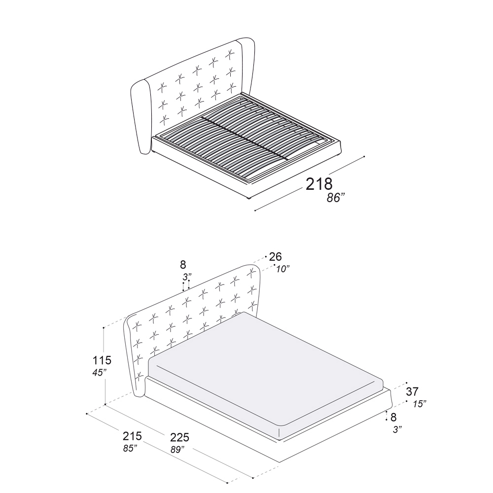longueur : 218 cm x profondeur : 225 cm x hauteur : 115 cm - convient pour un matelas 160x200 cm