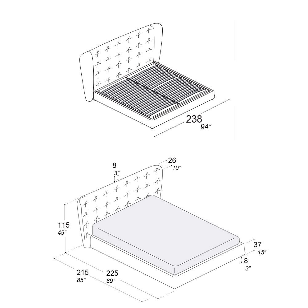 longueur : 238 cm x profondeur : 225 cm x hauteur : 115 cm - convient pour un matelas 180x200 cm