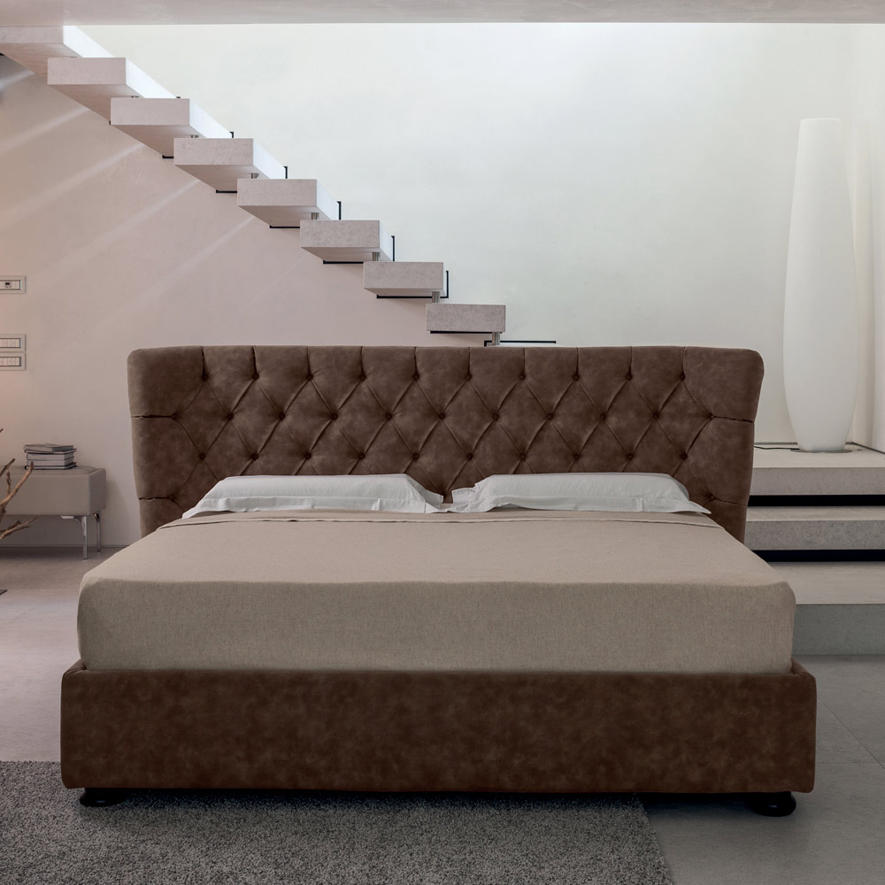 Lit double en tissu technonaubuk marron Fabriqué en Italie