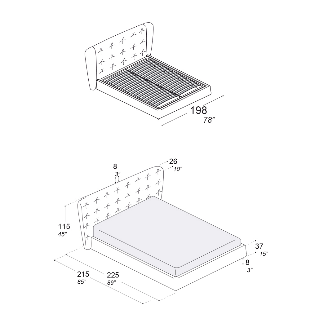 longueur : 198 cm x profondeur : 225 cm x hauteur : 115 cm - convient pour un matelas 140x200 cm
