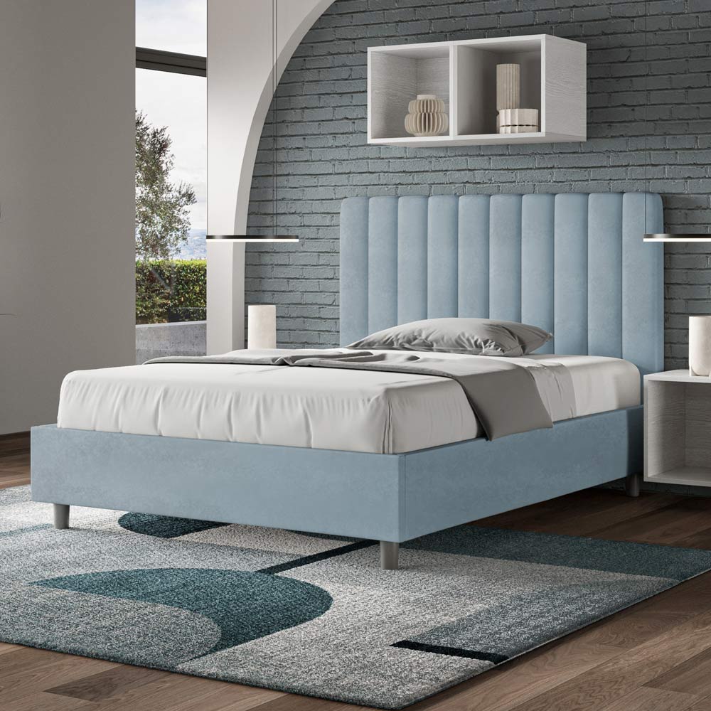 Lit Queen size 120x200 cm rembourré et recouvert de microfibre, fabriqué en Italie