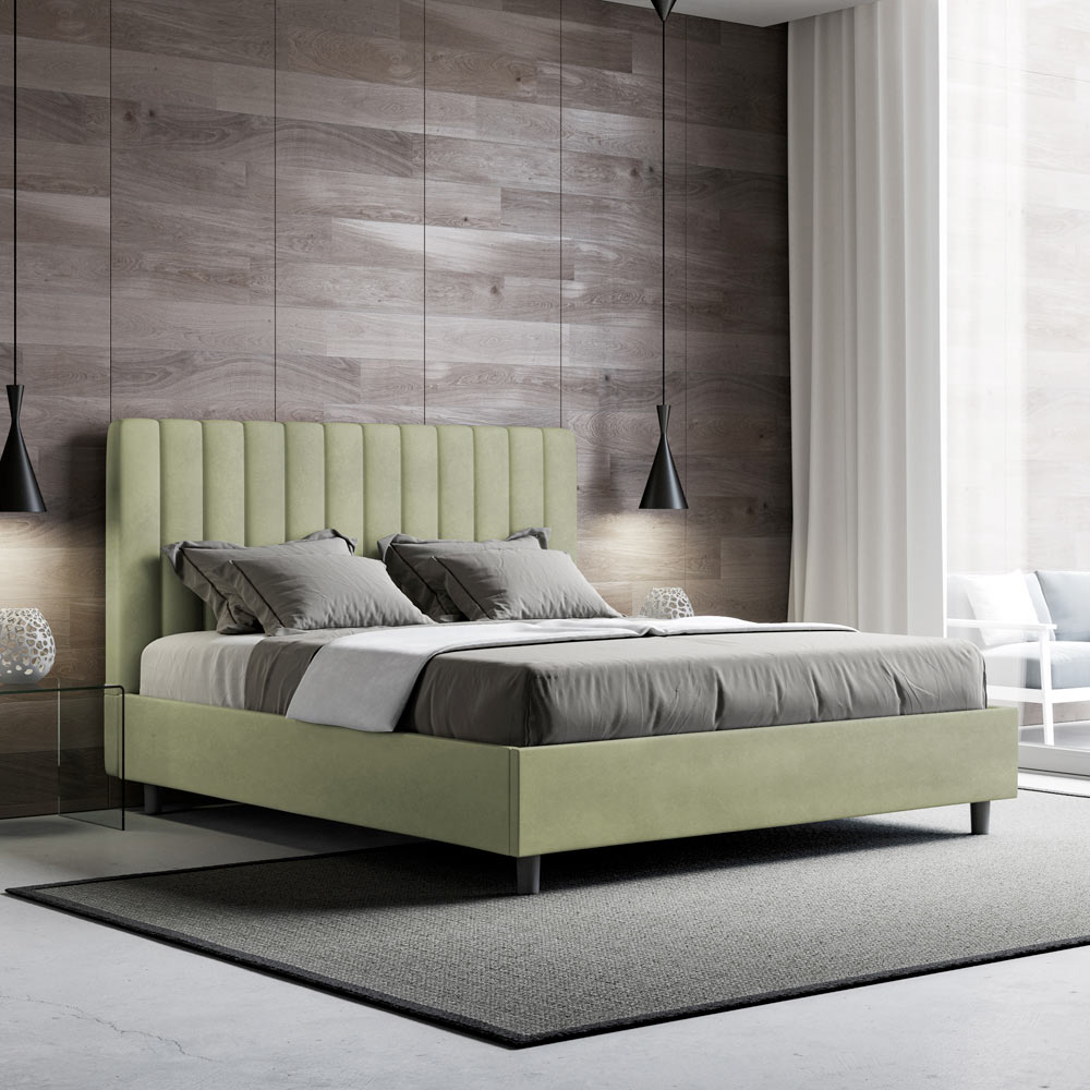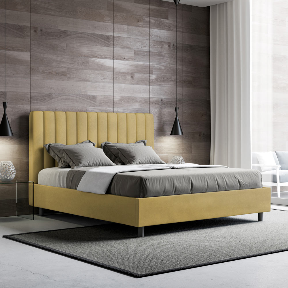 Lit double 160x200 cm rembourré et recouvert de microfibre, fabriqué en Italie