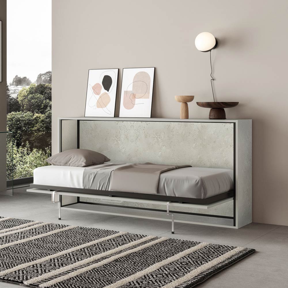 Lit simple escamotable réalisé avec des panneaux de particules anoblis Fabriqué en Italie