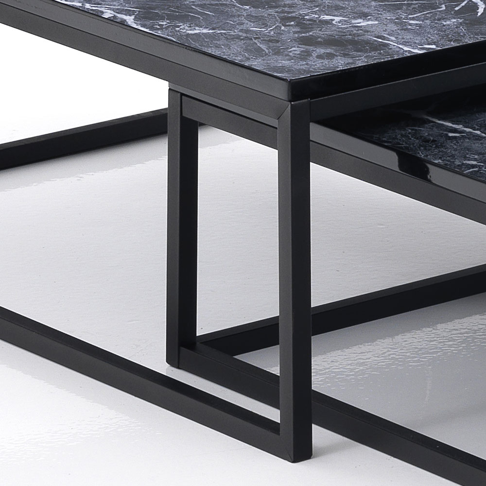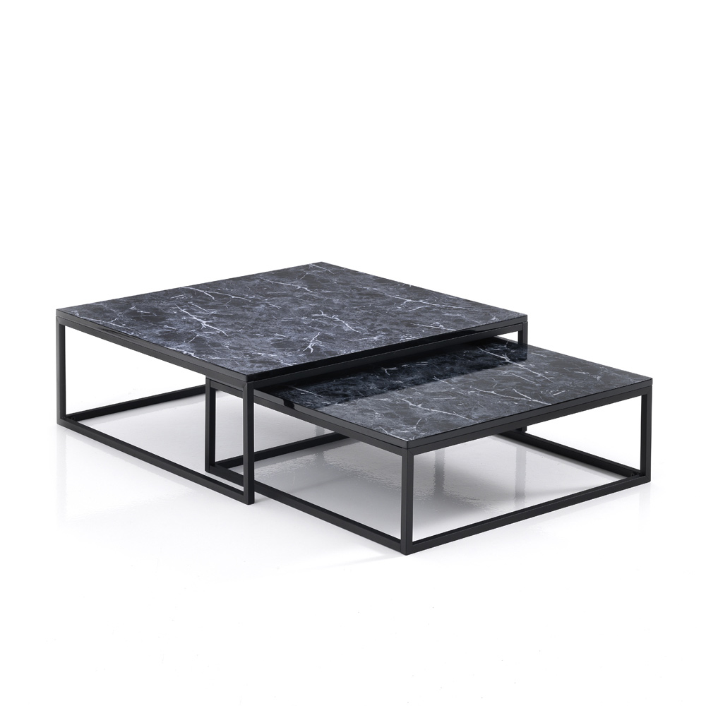 Ensemble de 2 tables de salon avec plateau en MDF recouvert de mélamine et structure en acier peint, entièrement . Cet article au style moderne et raffiné est parfait pour compléter l'ameublement des salons, des espaces de vie et des environnements contract, en garantissant fonctionnalité et praticité . Les matériaux choisis pour la production sont de première qualité pour offrir au client un produit totalement unique.