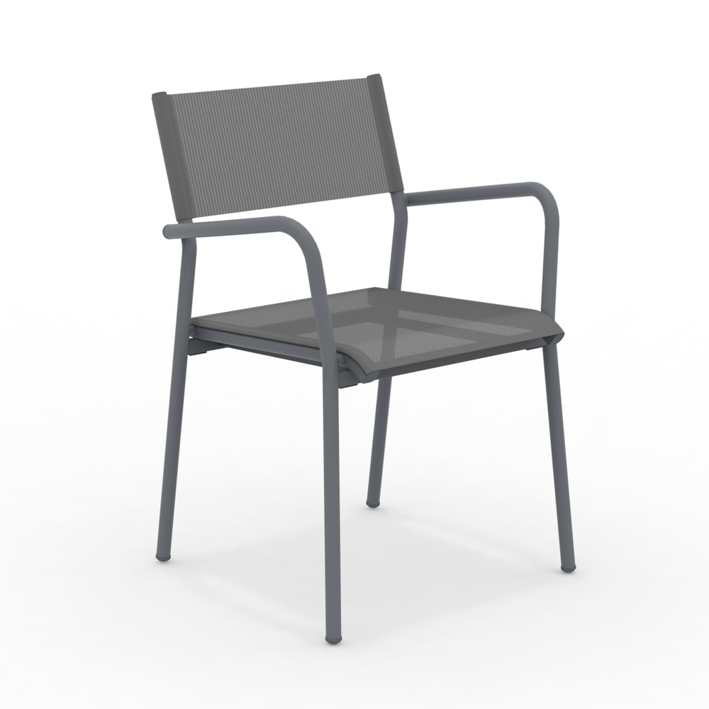 L' assise et le dossier en Batyline offrent un confort optimal grâce à leur respirabilité et leur résistance aux agents atmosphériques, garantissant une utilisation prolongée sans entretien. Les accoudoirs intégrés ajoutent une touche de confort, rendant ce fauteuil idéal pour de longs moments de détente en plein air.