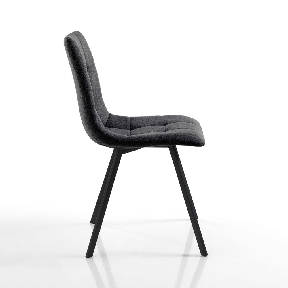 Ensemble de 4 chaises avec assise rembourrée recouverte de tissu couleur anthracite et structure en acier peint noir mat , entièrement . Cet article, grâce à ses finitions simples et élégantes , est parfait pour compléter l'ameublement de n'importe quel salon, cuisine et salon. Il offre une assise confortable et confortable et une grande stabilité grâce à la forme des pieds. Les matériaux utilisés sont d'excellente qualité pour offrir au client un produit non seulement beau à regarder mais aussi pratique et fonctionnel.