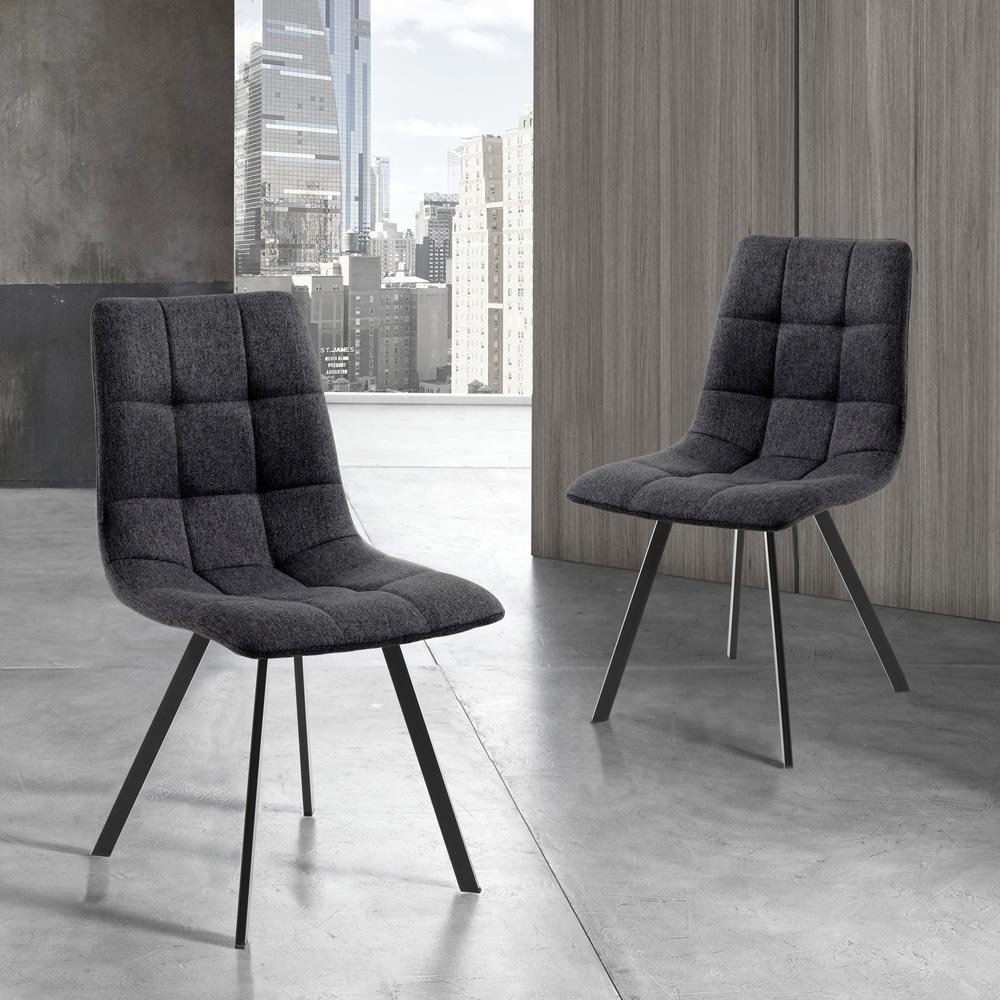 Lot de 4 Chaises en Tissu Anthracite et Acier Noir - Anthracite