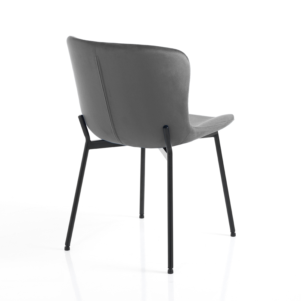 Ensemble de 4 chaises composées d'une assise rembourrée non amovible recouverte d' un doux tissu microfibre effet velours , d'une structure en métal peint en noir mat et d'un pied inclinable , entièrement . Cet article, grâce à ses finitions simples et élégantes , est parfait pour compléter l'ameublement de n'importe quel salon, cuisine et salon. Il offre une assise confortable et confortable et une grande stabilité grâce à la forme des pieds. Les matériaux utilisés sont d'excellente qualité pour offrir au client un produit non seulement beau à regarder mais aussi pratique et fonctionnel.