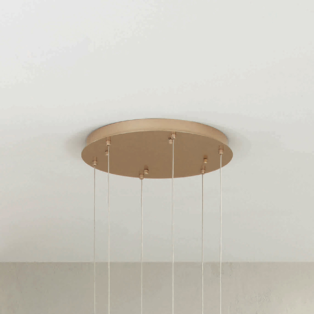 Lustre entièrement produit en Italie en métal peint en or avec câbles réglables en longueur et 6 lumières LED. Ce produit vise à valoriser la tradition à travers une approche contemporaine où style, classe et innovation fusionnent pour créer de nouvelles formules de design pour meubler et illuminer n'importe quel environnement avec goût et caractère. Les points forts sont la particularité des formes , la qualité des matériaux et l' unicité de la source lumineuse .