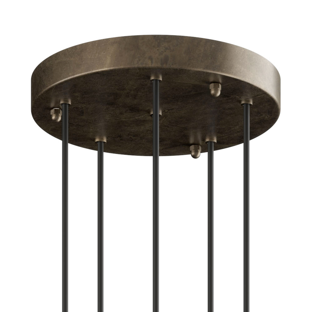 Lustre à 6 lumières en fer antique et verre transparent avec câbles réglables en longueur et au plafond entièrement Made in Italy. Les lignes épurées de la collection de lampes d'intérieur mettent en valeur la pureté du matériau en fer et rendent cet élément d'ameublement unique et inimitable. Le lustre se prête à éclairer et à donner une touche d'unicité à n'importe quel environnement et style d'ameublement afin de s'adapter aux besoins de conception les plus disparates.