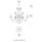 Lustre 8 lumières en verre de Venise fabriqué à la main Made in Italy.