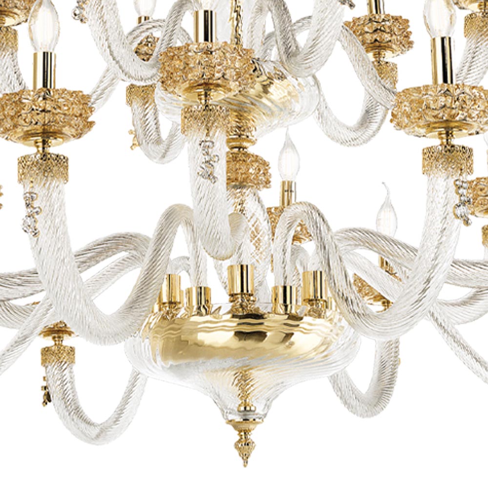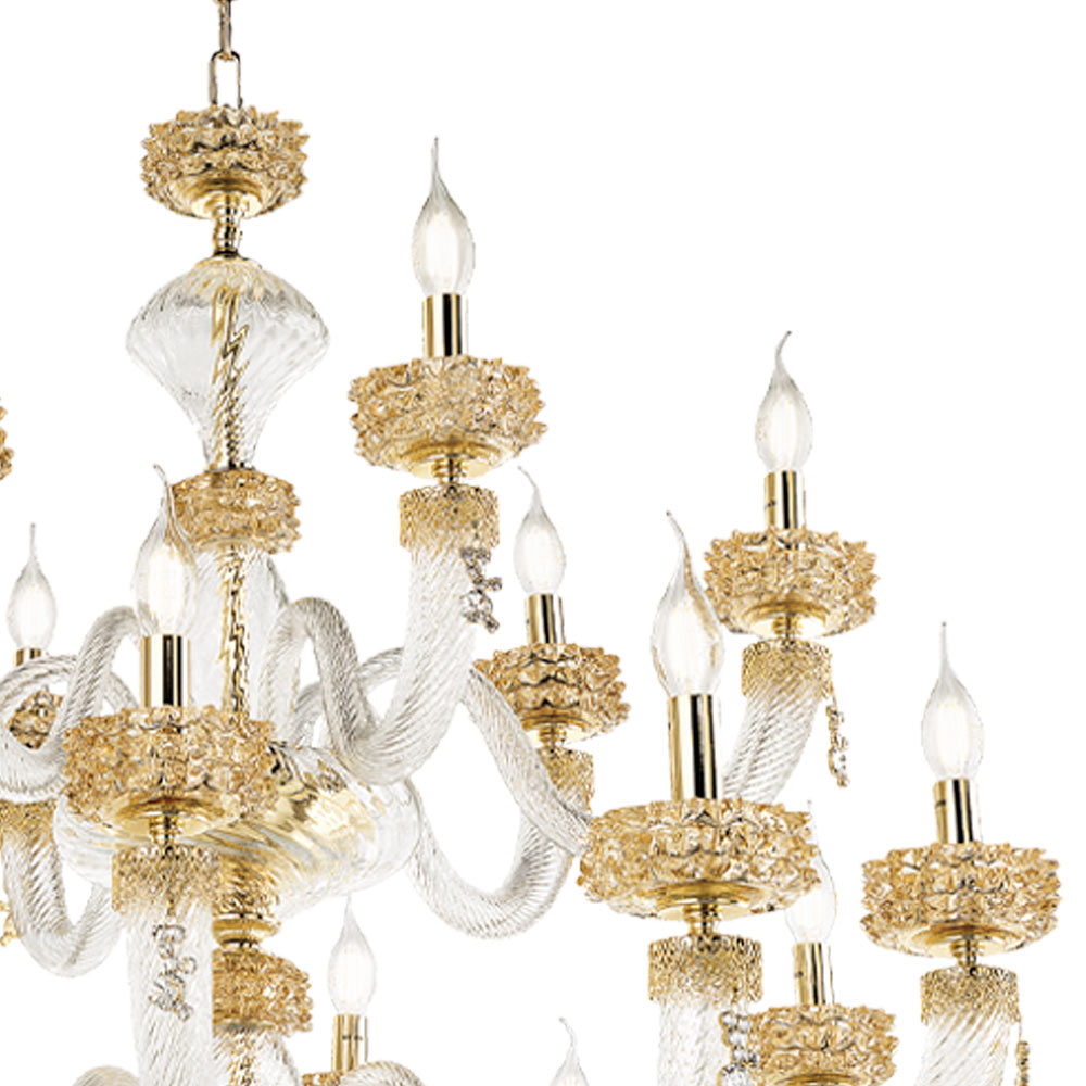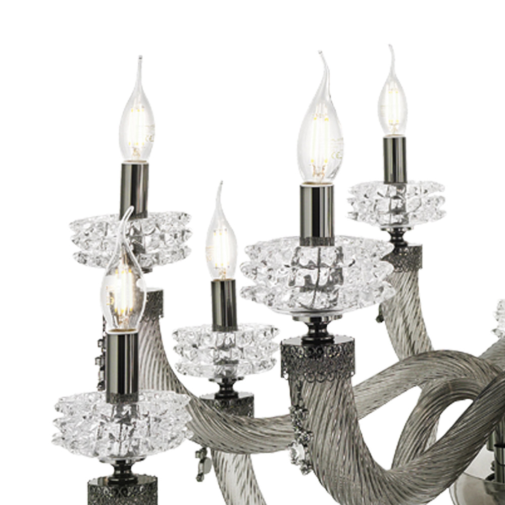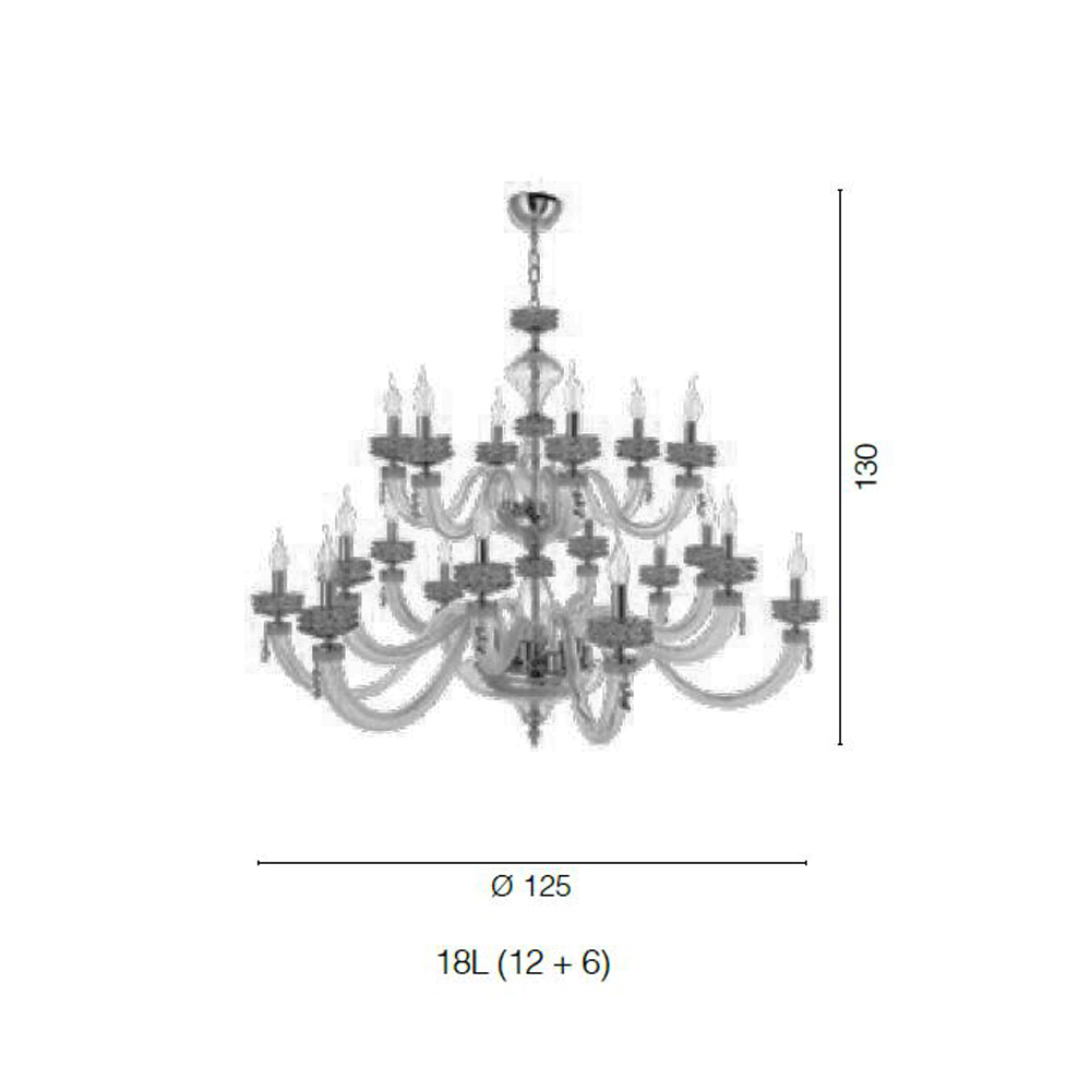 Lustre 18 lumières en verre et métal artisanal, design de luxe italien.