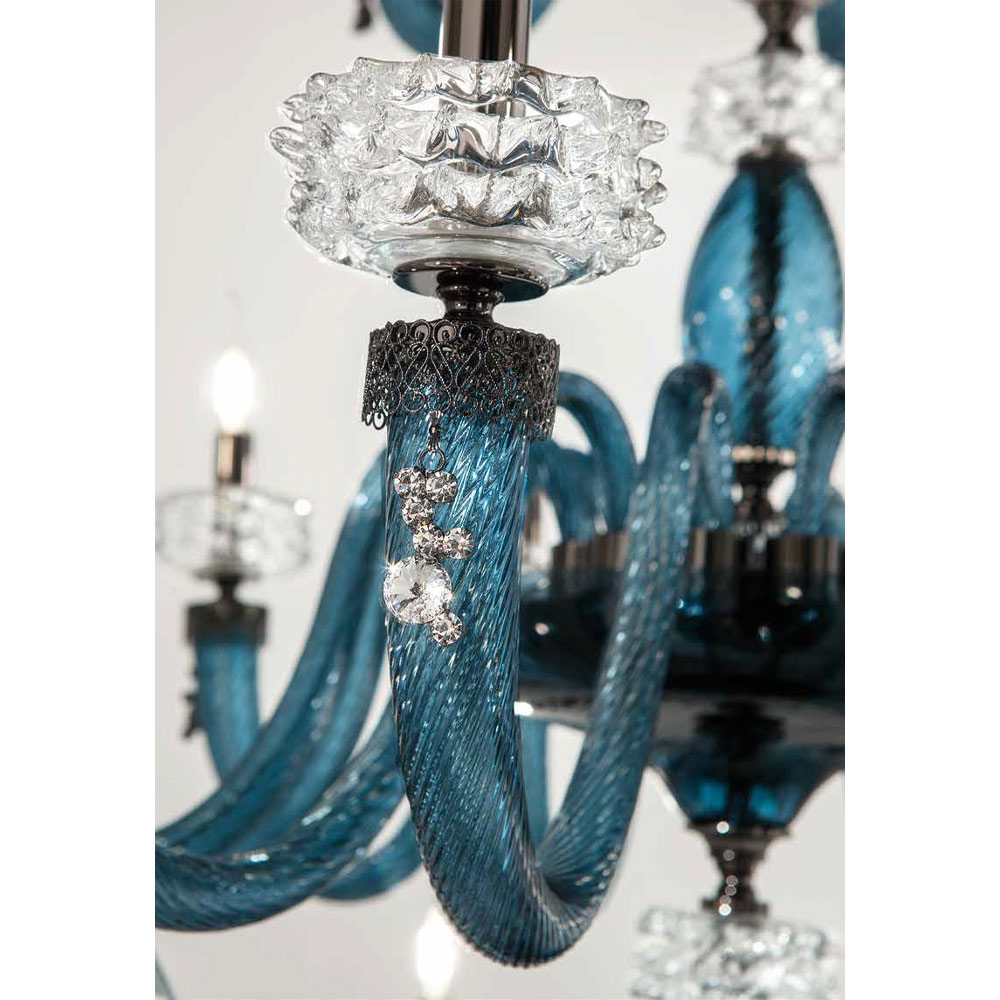 Finitions disponibles :- Corps en verre turquoise - détails en verre transparent - métal bruni ;