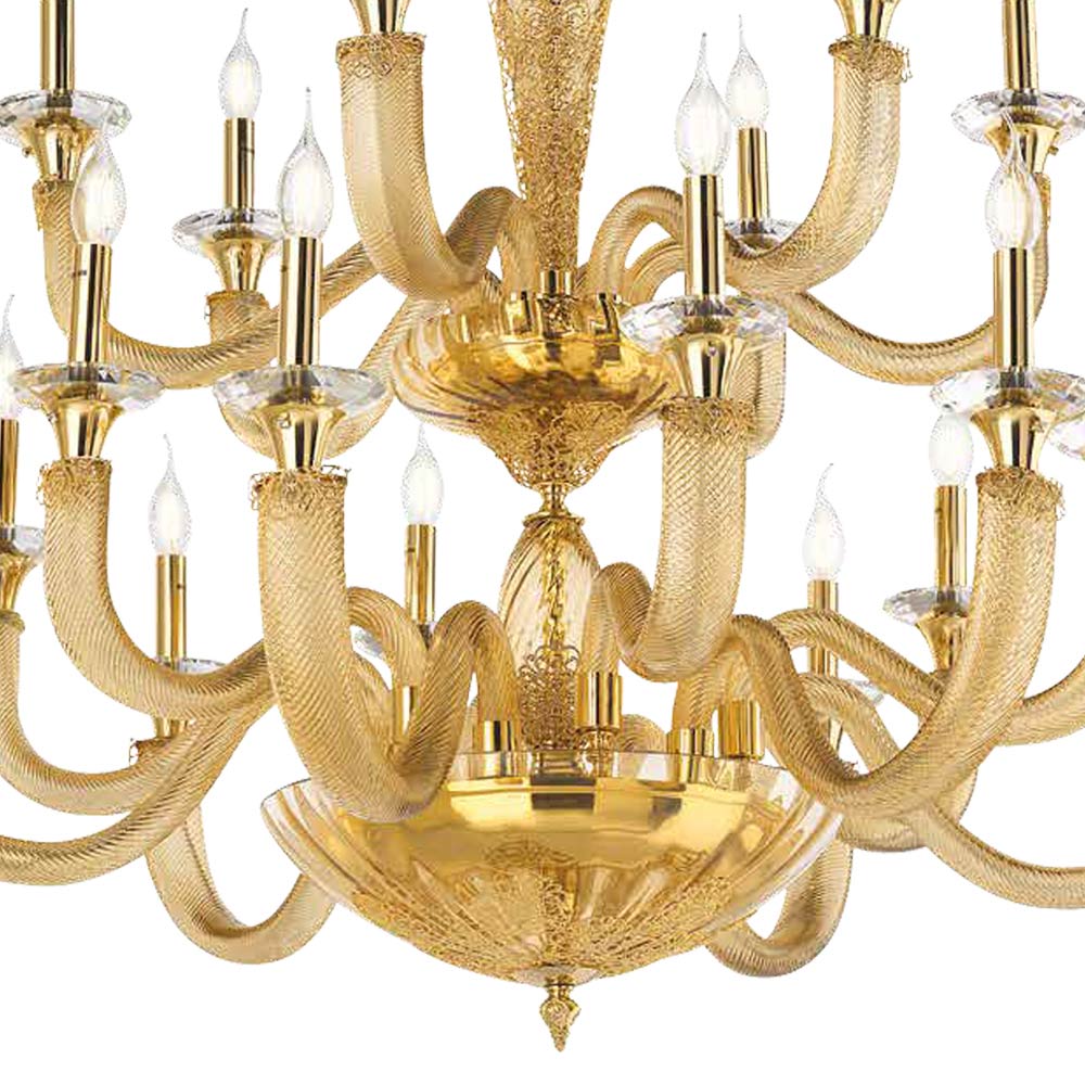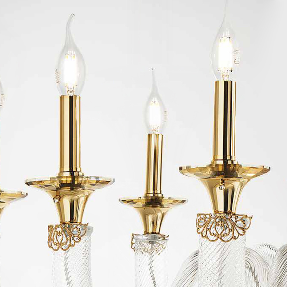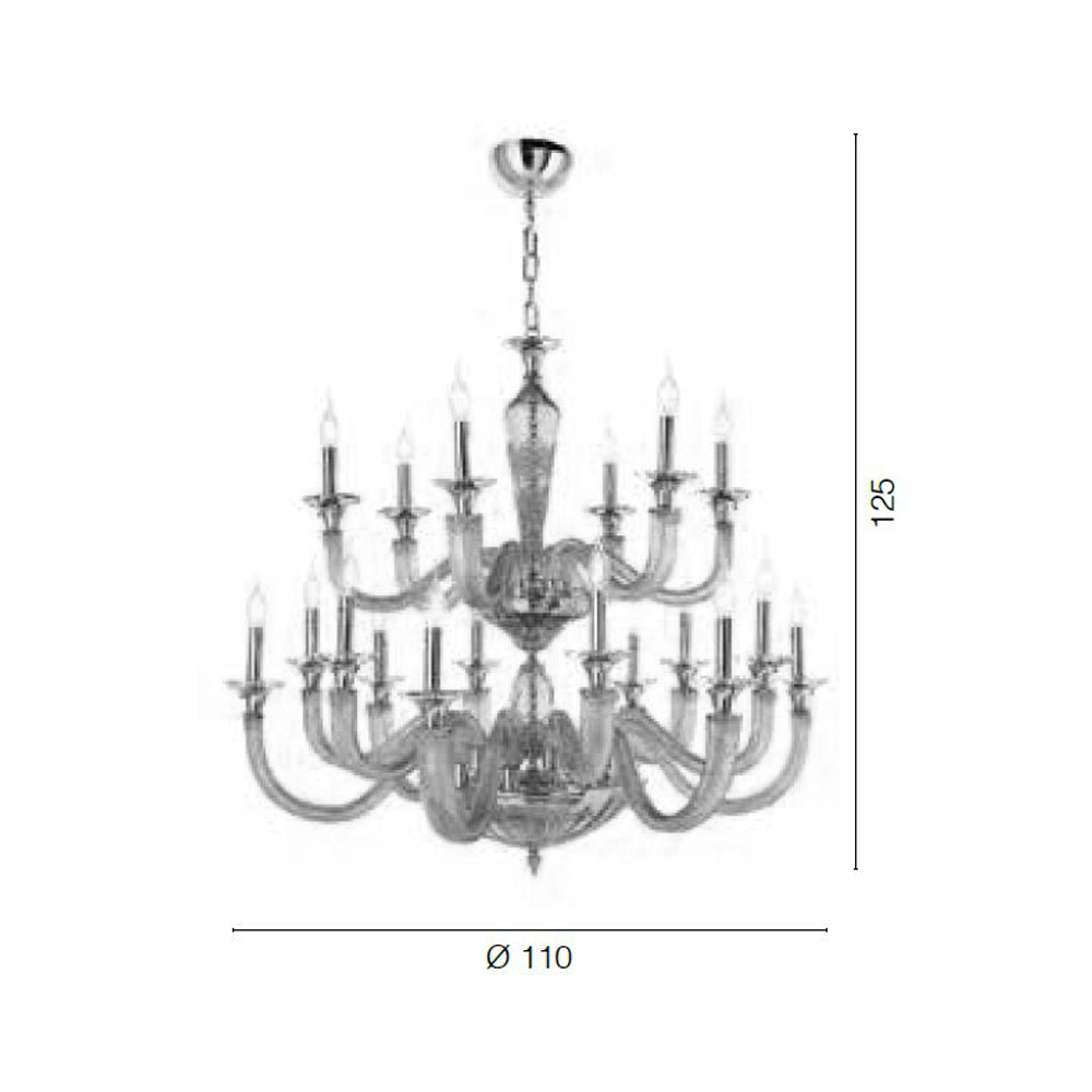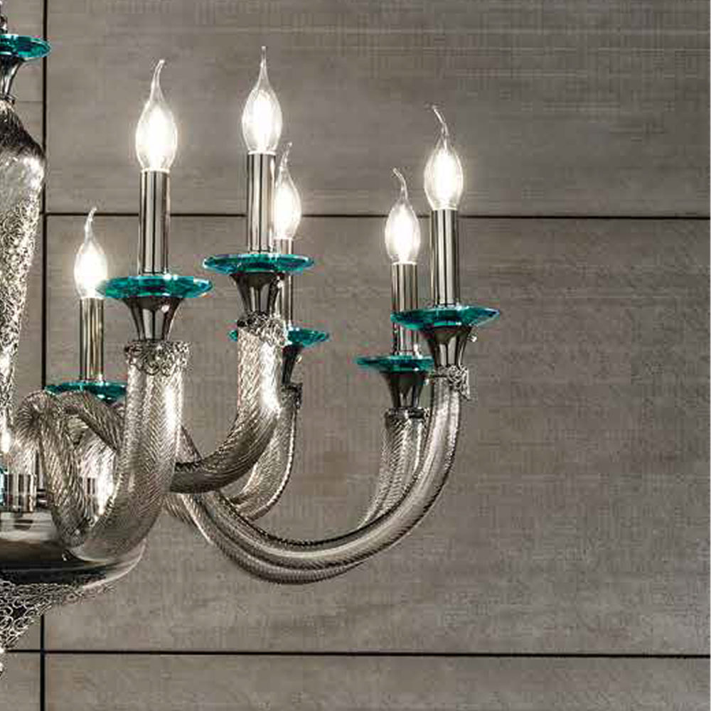 Lustre 18 lumières en verre et cristaux artisanaux, luxe italien.