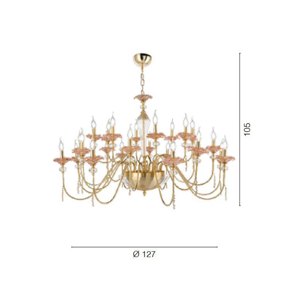 Finitions disponibles :- Corps en verre transparent - détails en verre rosé - métal doré satiné ;
