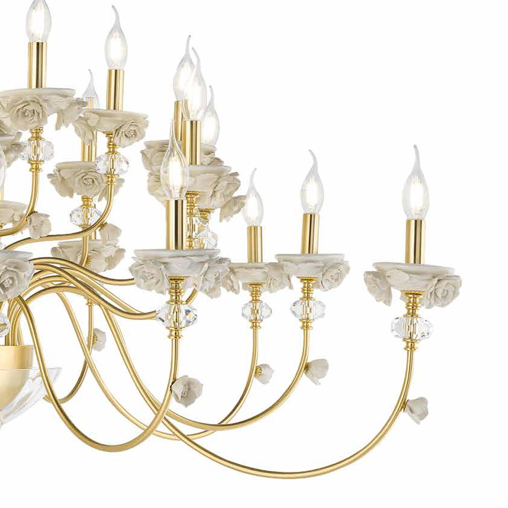 Lustre 30 lumières en porcelaine et verre soufflé, luxe made in Italy.
