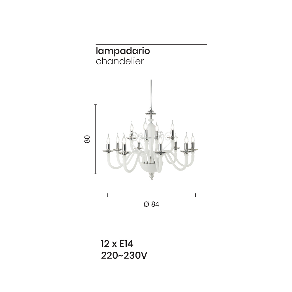 Ce lustre à 12 lumières présente un design classique, raffiné et élégant .