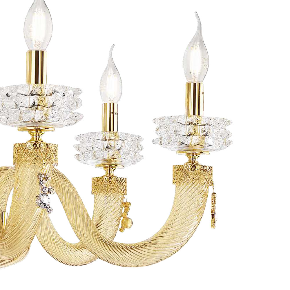 Lustre à 6 lumières en verre et métal fabriqués à la main, design de luxe italien.