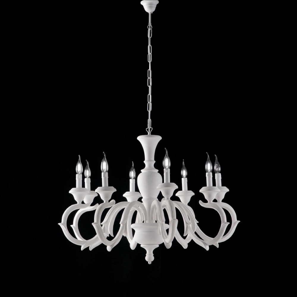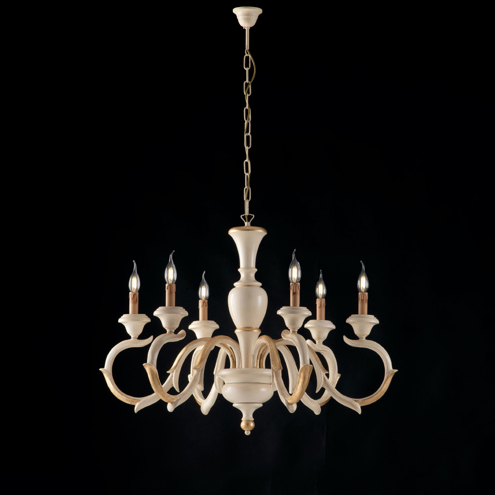 L'élégance intemporelle et le savoir-faire artisanal se conjuguent dans ce lustre classique en bois, fabriqué en Italie avec soin et une grande attention aux détails. Sa structure harmonieuse, caractérisée par des bras sinueux de style traditionnel , confère à la pièce une élégance à la fois spectaculaire et raffinée.
