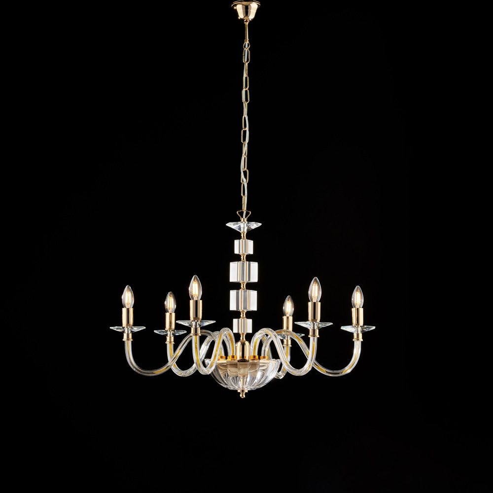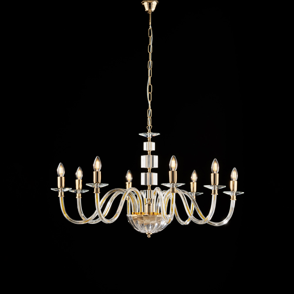 La finition cristal/or poli rehausse l'éclat du lustre et met en valeur ses formes harmonieuses, ce qui le rend idéal pour les salons majestueux , les salles à manger élégantes , les salons classiques , les hôtels de luxe et les espaces professionnels haut de gamme . Chaque détail témoigne de l'excellence du savoir-faire italien .