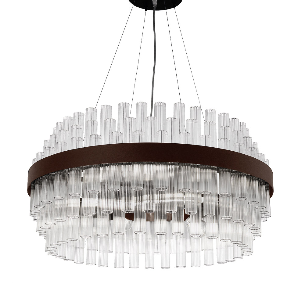 Lustre en verre soufflé rayé artisanal de luxe fabriqué en Italie.